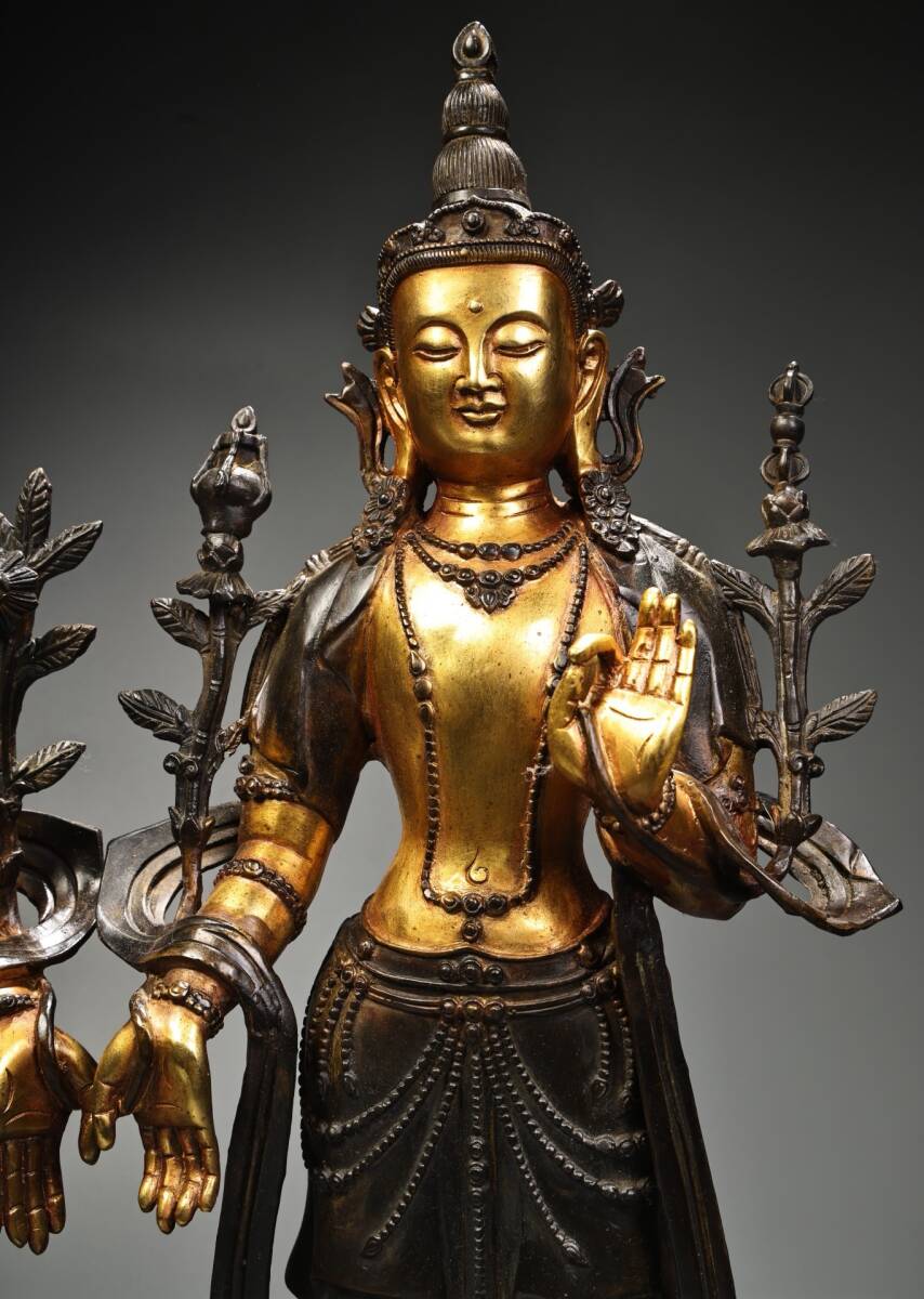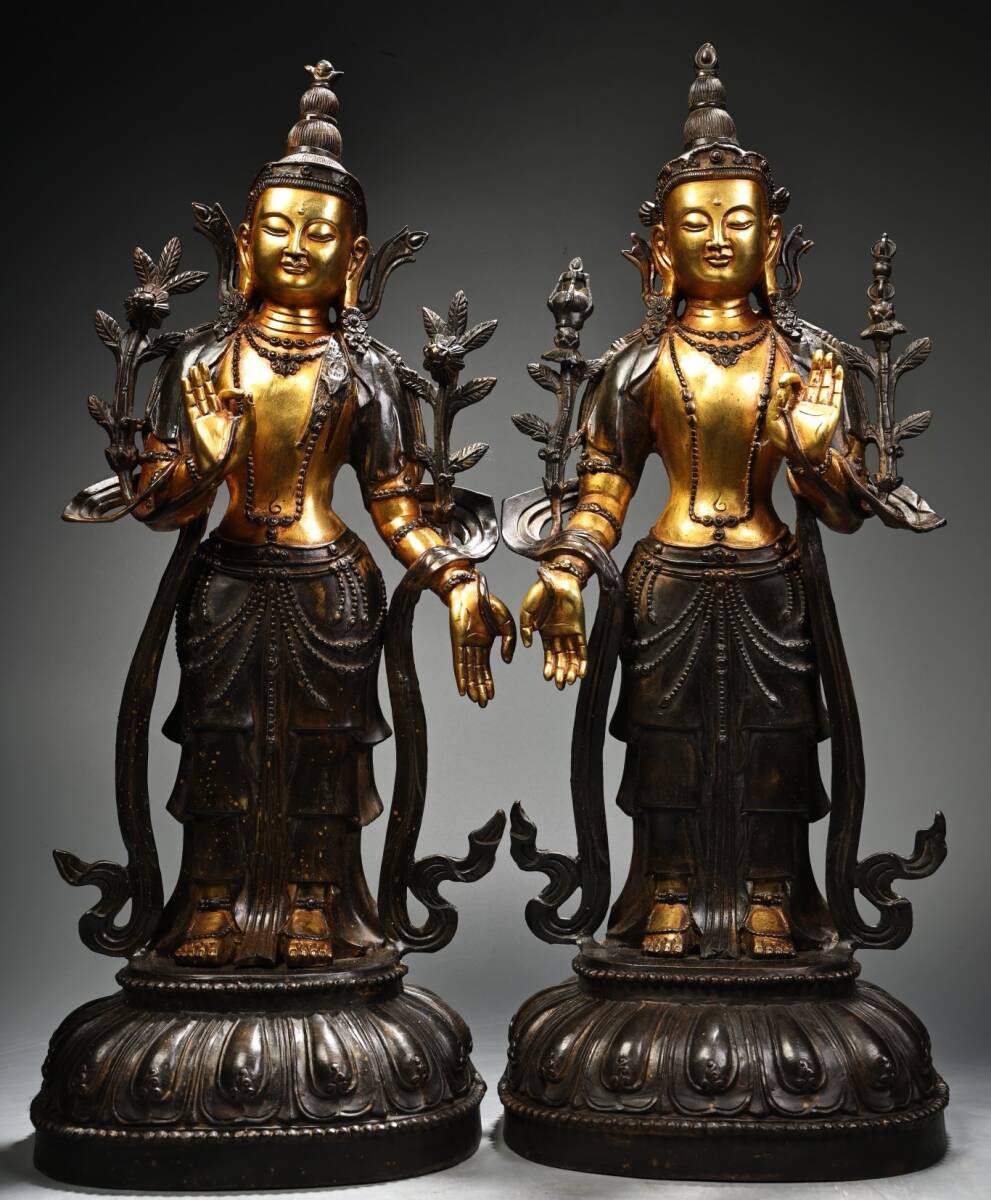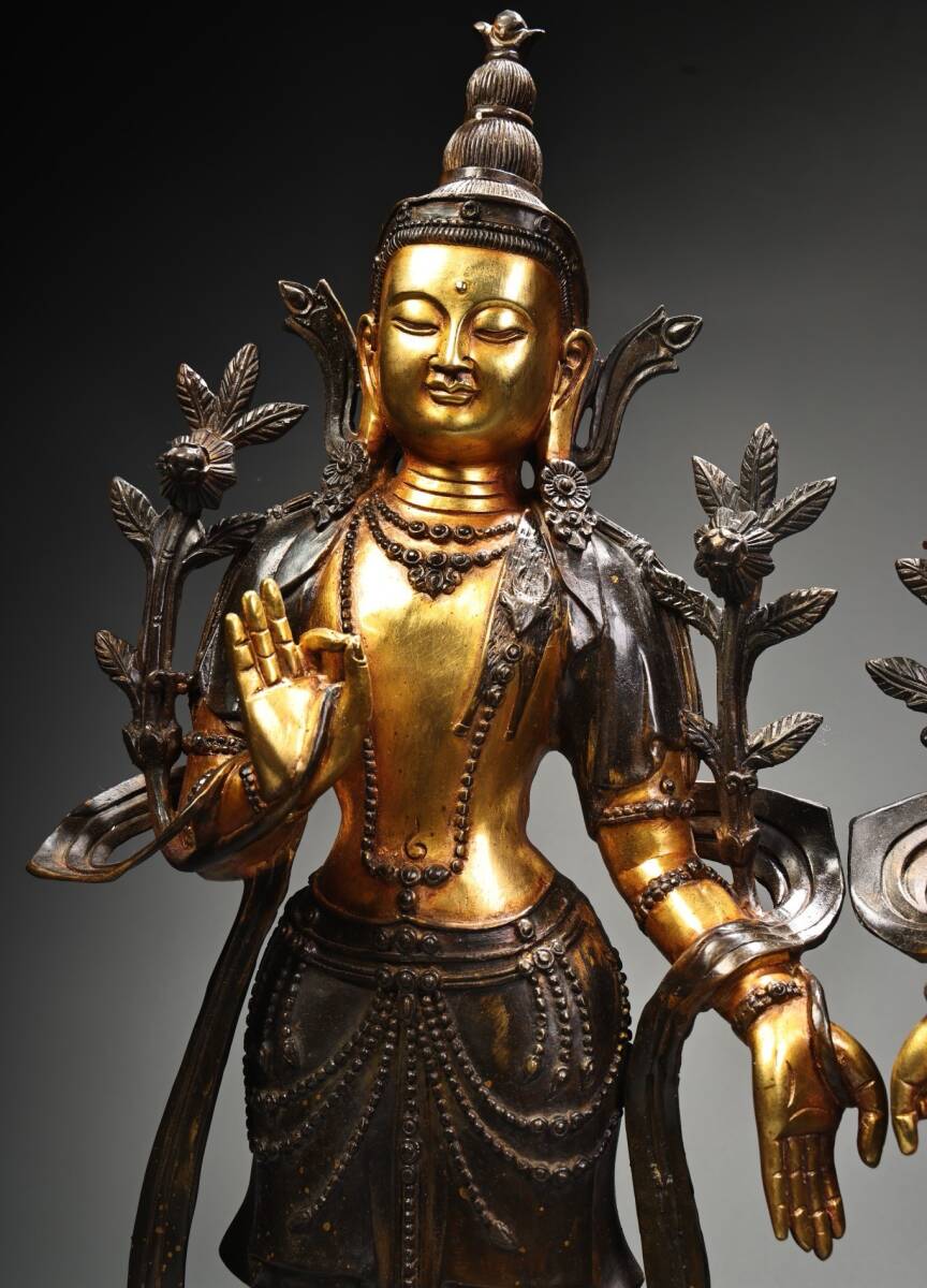 唐物 明 永樂年製 純銅 全銅 高レリーフ鏨刻 塗金蔵伝度母 仏像 奉納されていた 供養品 銅製 古美術品 時代物 中国古玩 骨董品 D68