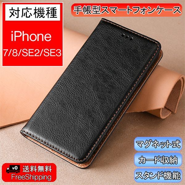 | 商品名 | iPhone SE2/SE3/7/8用 スマホケース 新品 ブラック 手帳型 レザー 耐衝撃 アイフォン カード収納 携帯ケース 7 8 SE2 SE3 |