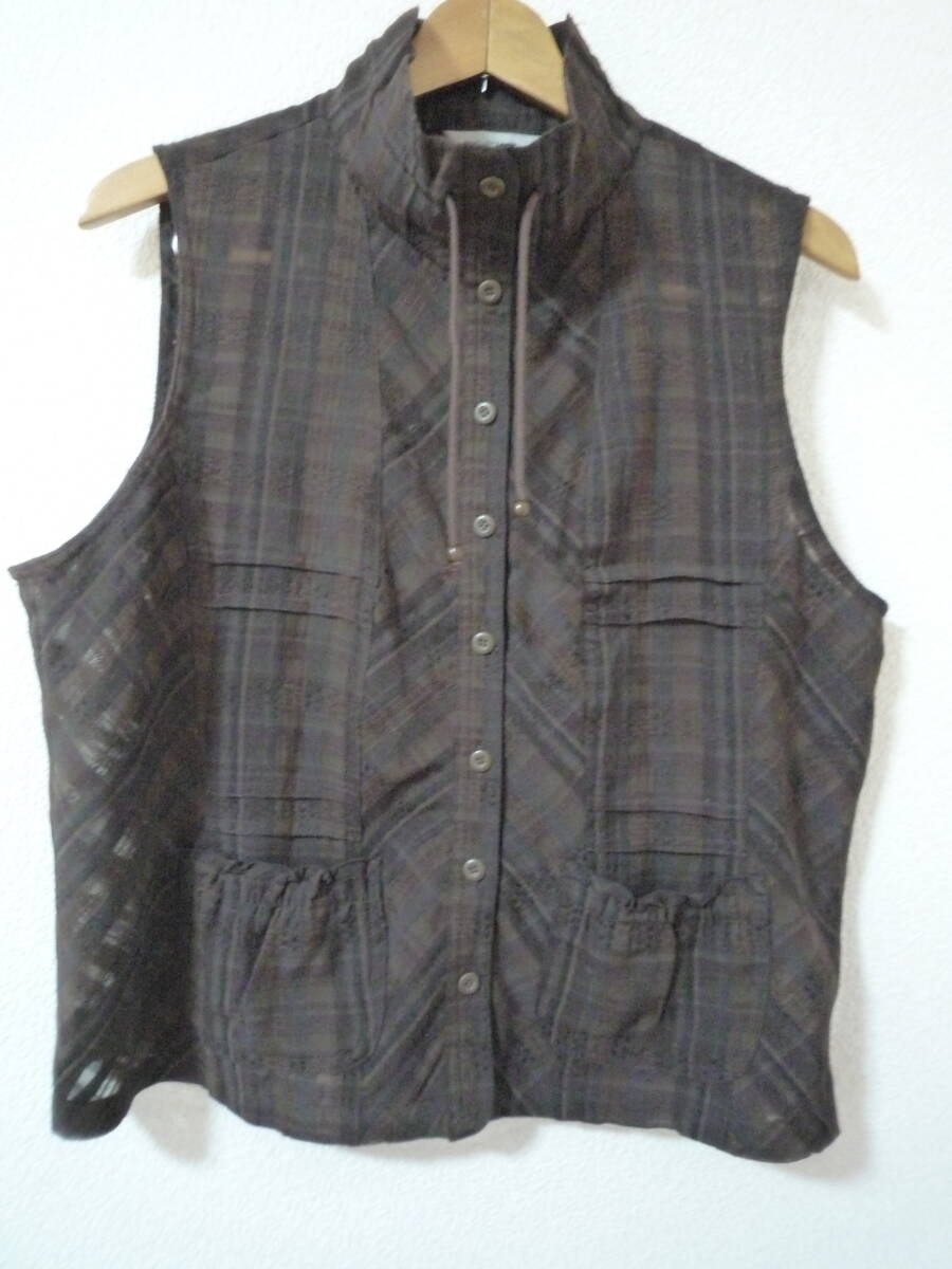 春夏 チェック ベスト こげ茶 LL★送料無料