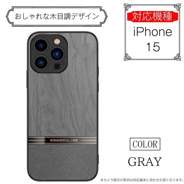 | 商品名 | iPhone 15 用 スマホケース 新品 PUレザー ソフト 耐衝撃 アイフォン 携帯 ジャケット シンプル 木目 グレー |