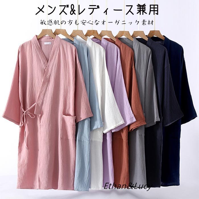 バスローブ レディース メンズ ガウン 部屋着 ルームウェア 綿100% ダブルガーゼ バスローブ 優しい肌触り 男女兼用☆13色/L~2XL選択/1点