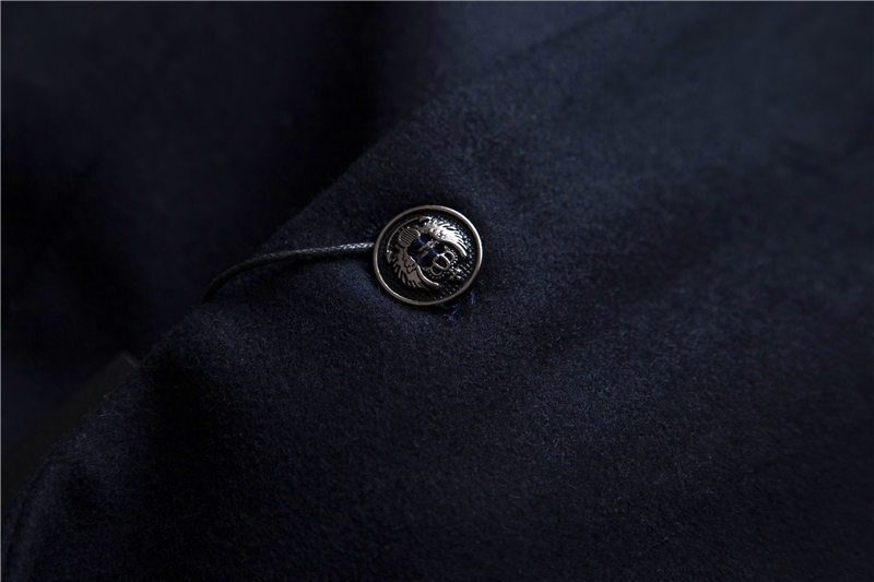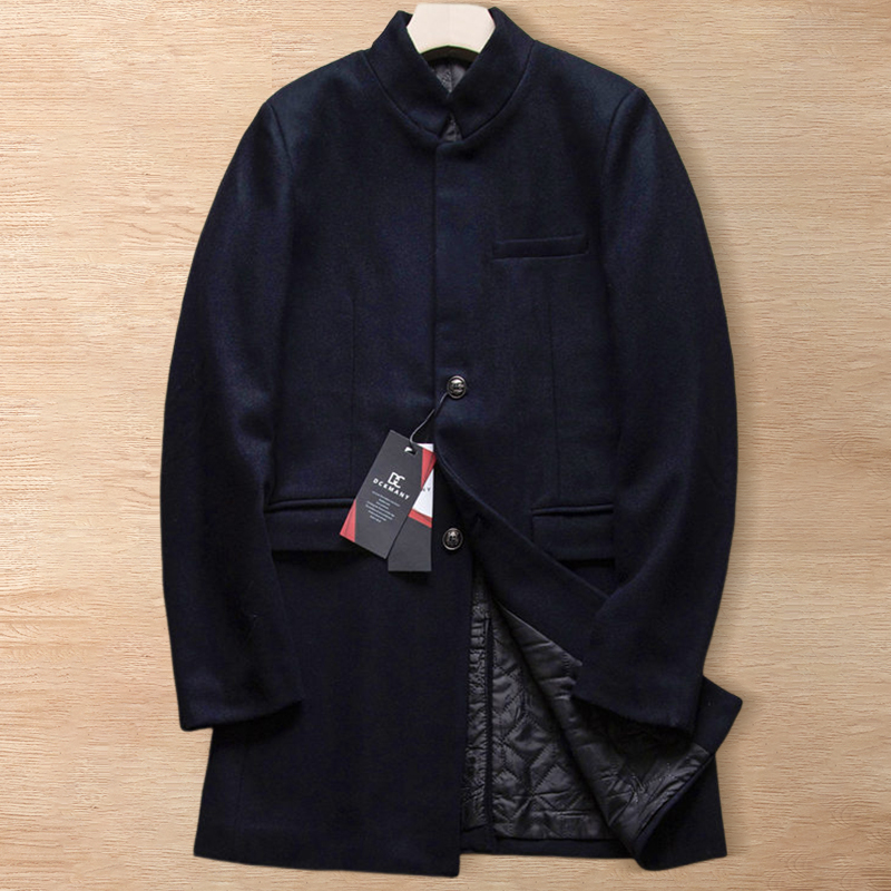 Y673-L程度 ネイビー 新品DCKMANY ウール混 チェスターコート メンズ 立ち襟 ジャケット 中綿 ミドル ルーズ ビジネス 秋冬 アウター