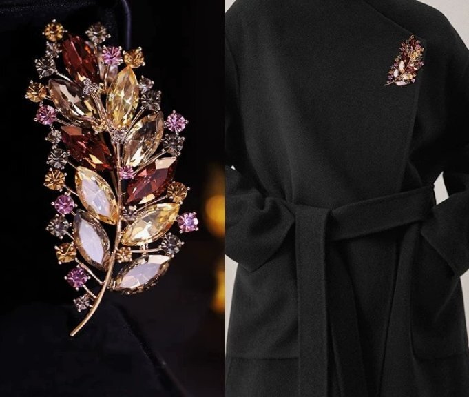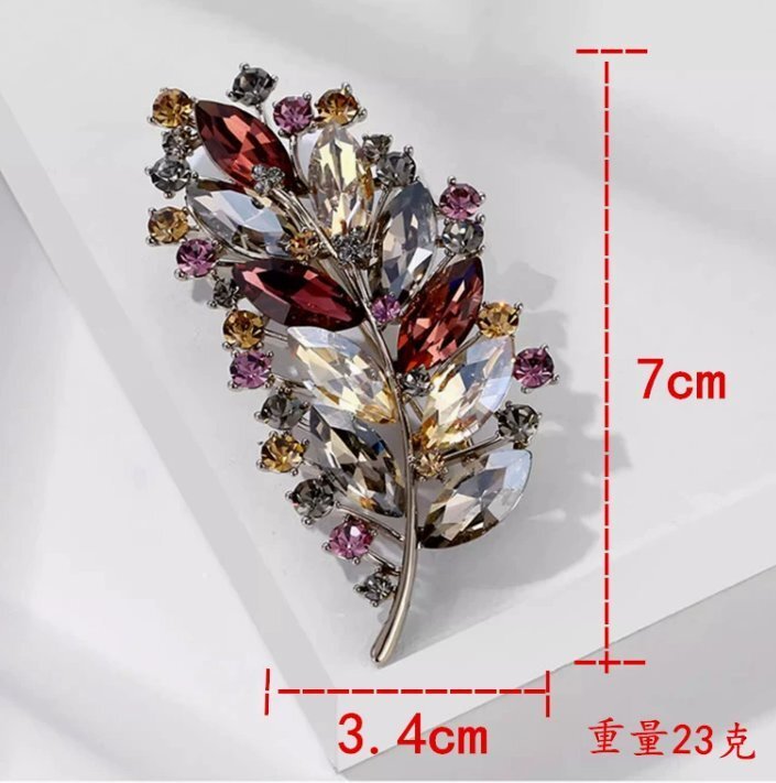 高級感復古の贅沢な木の葉のブローチ百合のスーツのコートの礼服のアクセサリーの多彩な偽物の水晶のファッションのブローチです