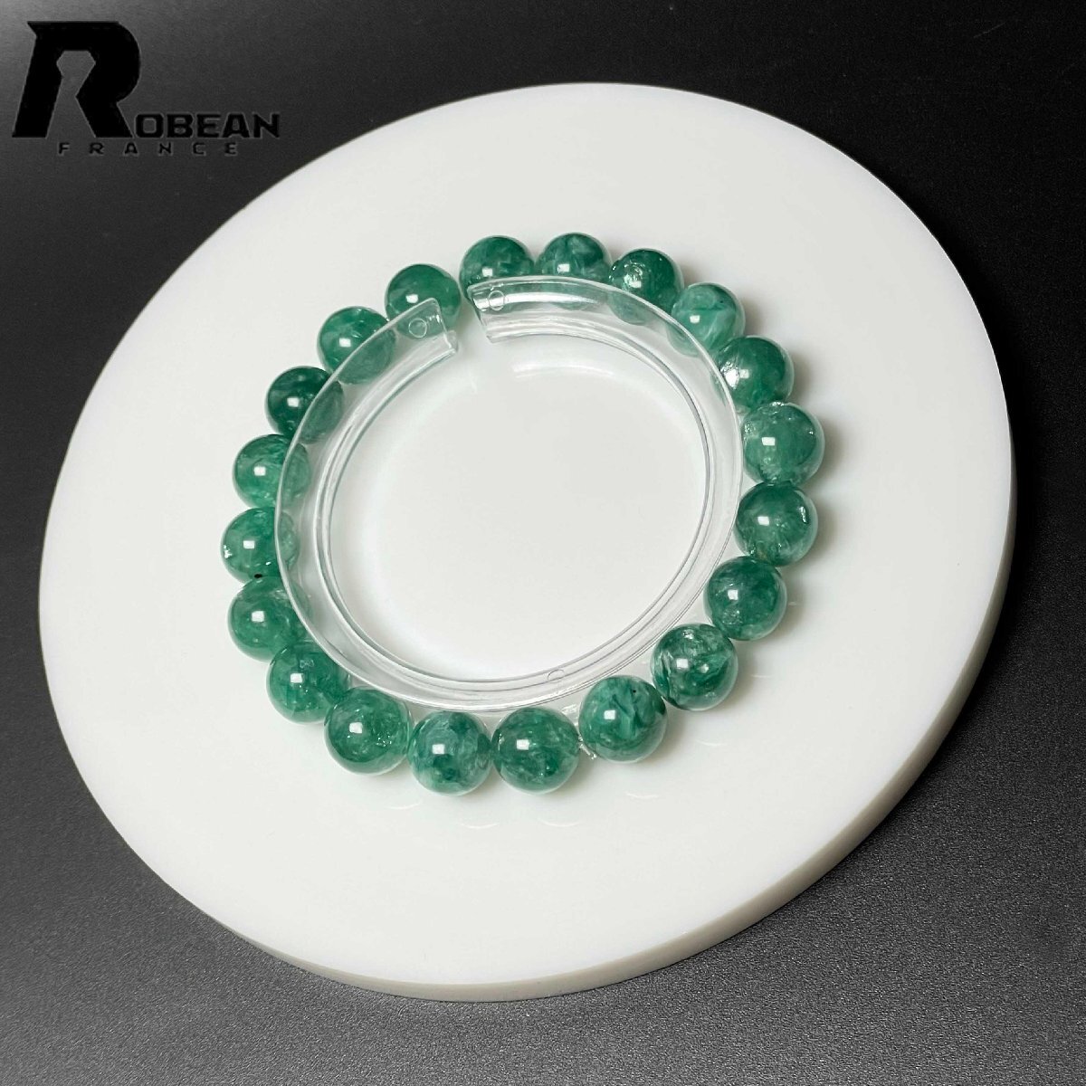 貴重 EU製 定価35万円★ROBEAN・グリーンマイカ★パワーストーン アクセサリー 雲母石 天然石 きれいめ 約9.3-10.2mm