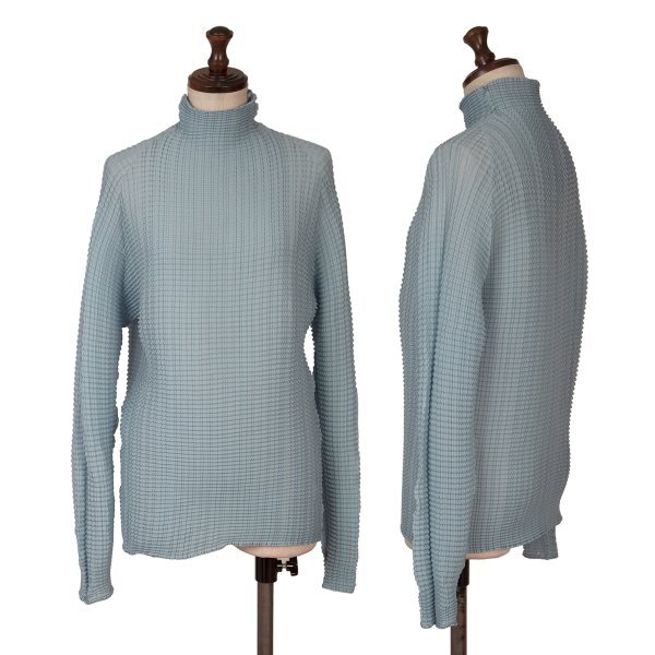 イッセイミヤケISSEY MIYAKE ストレッチプリーツハイネックカットソー 水色2 |