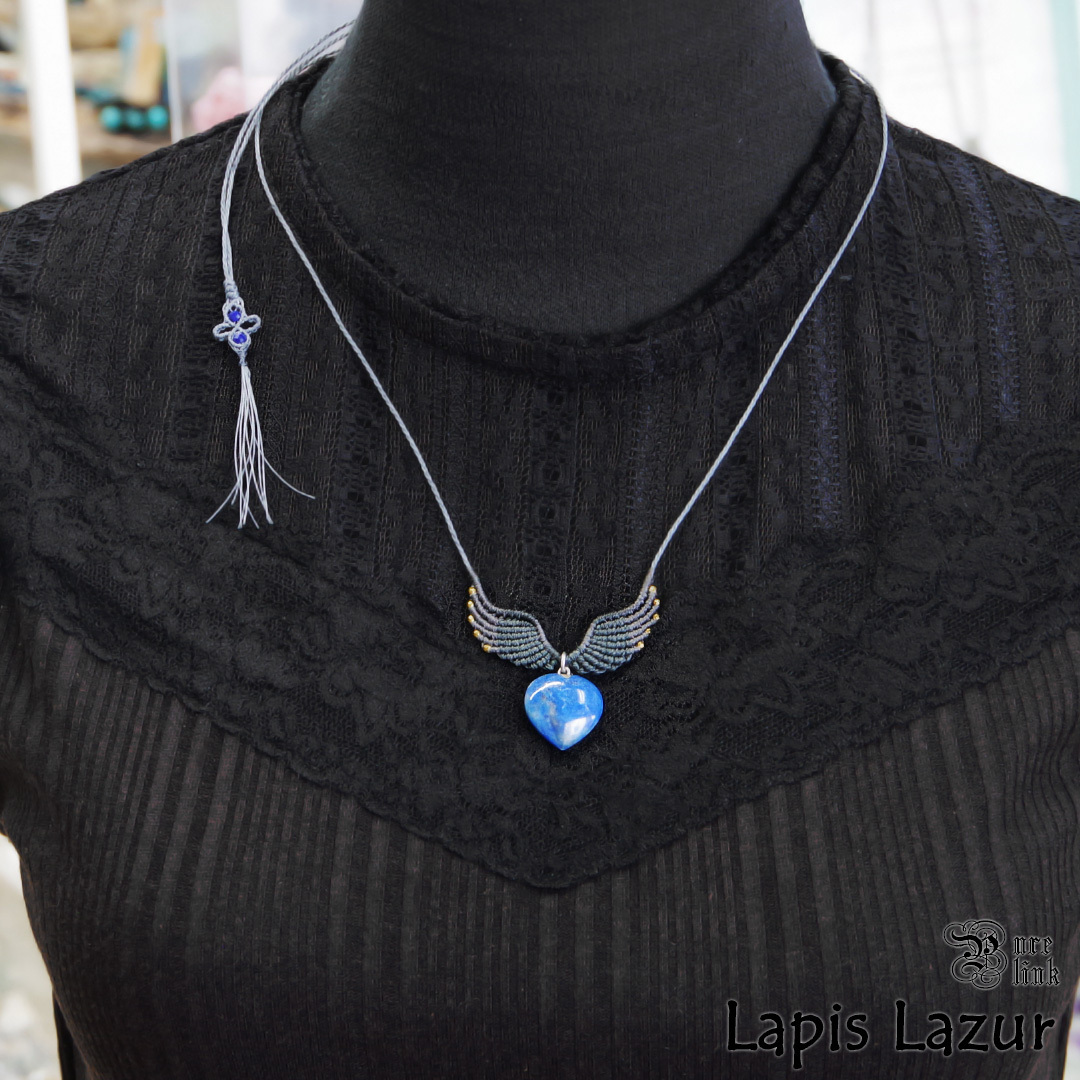 愛と平和を表す魔石『ラピスラズリ』天使の羽根!?羽翼マクラメ編トップネックレス2