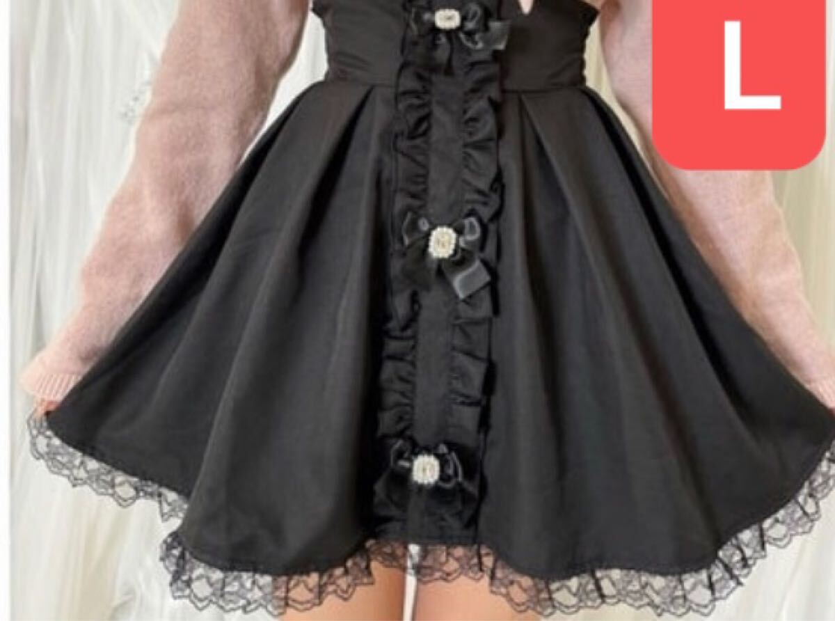 新品 タグ付き 眞白ありす ビジューフリルスカート 黒 Lサイズ 総丈46.5㎝ ウエスト66cm ミニスカ 量産型 地雷系 黒ロリータ ゴスロリ