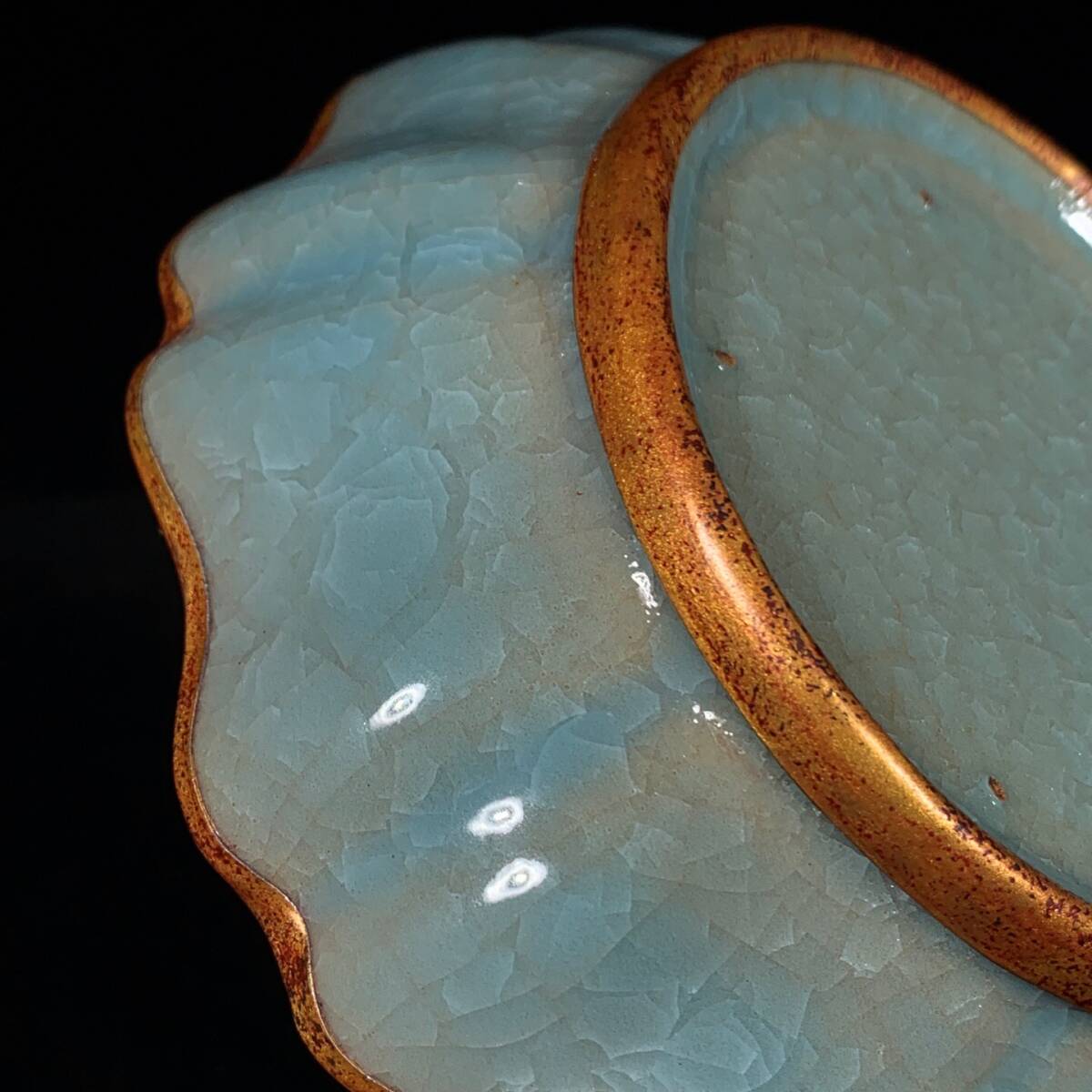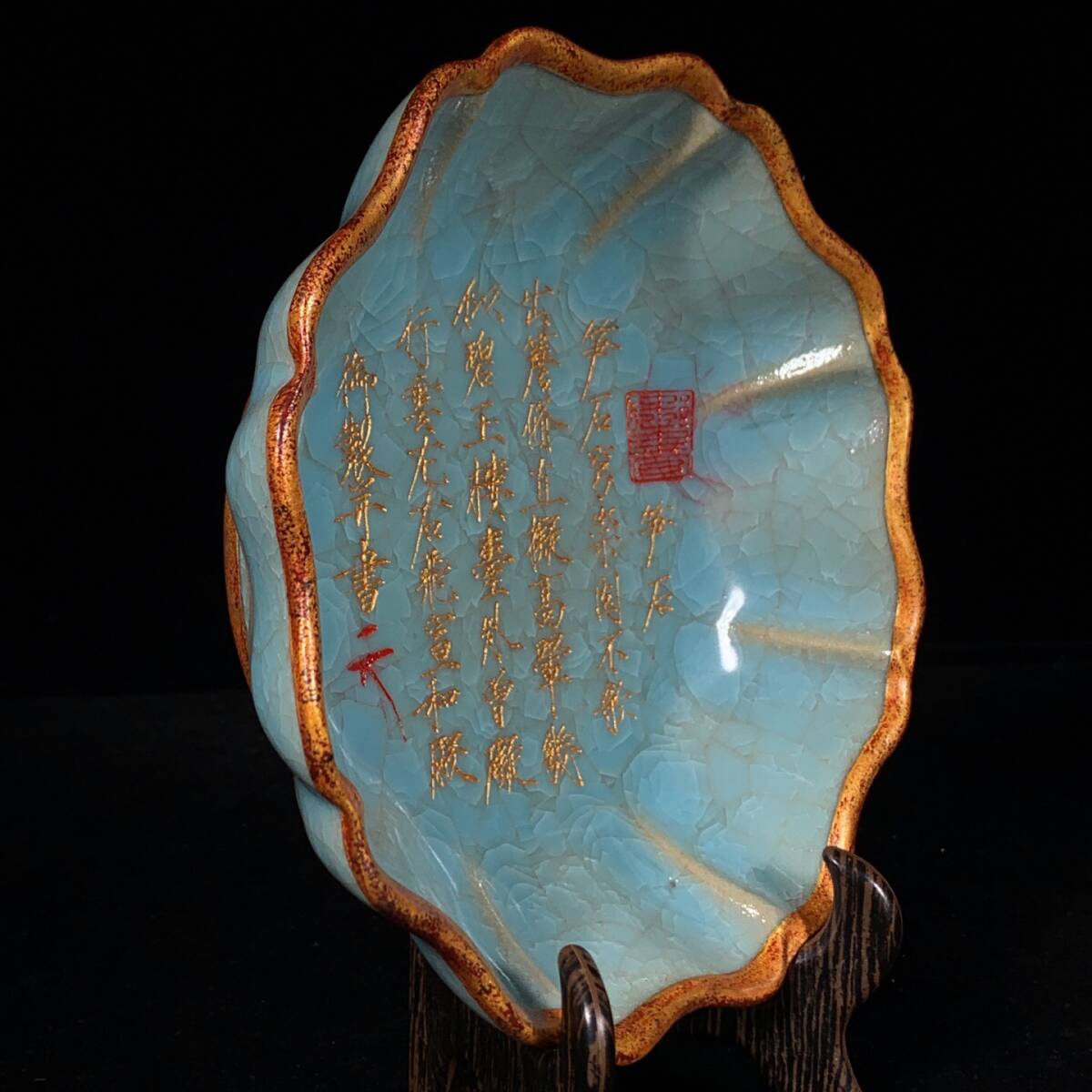 『宋・古陶瓷品・汝窯・包口・冰裂紋・銘文花口洗・ 染付・唐物』極細工 置物古賞物 中国古玩 中国古美術