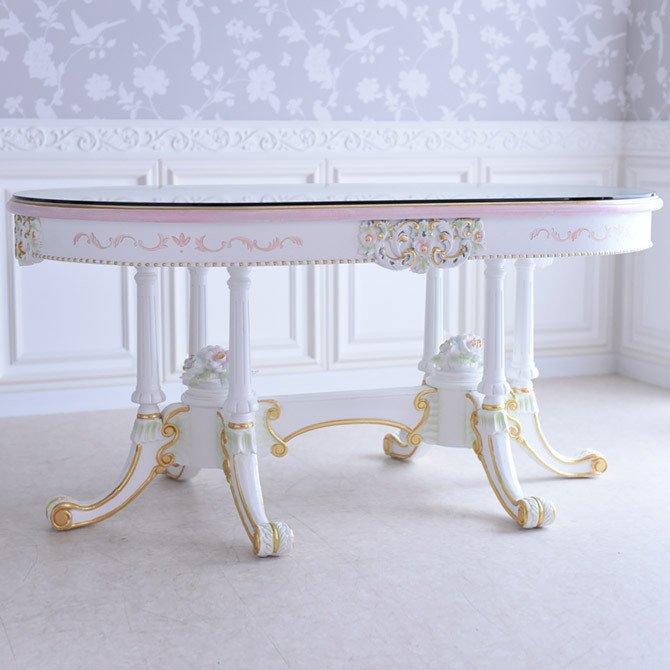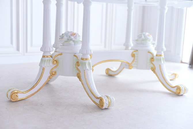 | 商品説明 | 優美で女性的な曲線美のロココ調家具です。 ヨーロッパの王宮がこよなく愛したその美しさは、現在でも熱烈な支持を得ています。 クラシック塗装が施され、ひとつひとつペイントされたハンドメイドの仕上がりが魅力です。 ゴールドのラインが、美しいシルエットを際立たせています。 ROCOCO様式の魅力がいっぱいつまった、ダイニングテーブル160オーバル(ガラス天板付き)♪ ハンドペイントが施された天板が、いつもの食卓をより一層楽しく優雅に演出します。 ガラス天板付きなので、汚れを気にせず使うことができますし、汚れてもすぐに拭き取れるので、お掃除も楽ちんです。 サイズ:幅160.5×奥行き96×高さ76.5cm ガラス天板厚み8mm 材質:MDF ※落札価格に消費税が掛かります。 ※お使いのモニターや照明器具などで、実際の色とは若干異なって見える場合があります。 ※アウトレット商品のため、多少の色ムラ、小キズが見られます。使用には問題ありません。 ※ヤフオク以外でも販売していますので、出品中に在庫が無くなった際は、出品を取り消す事がございます。 |