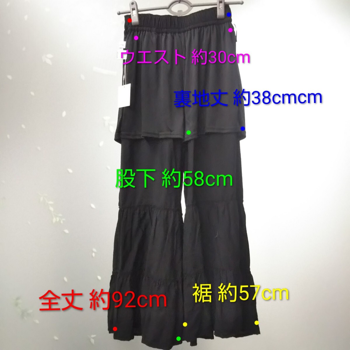 全着丈約92㎝  ・股下 約58㎝  ・ウエスト(全周ゴム) 約30㎝ ・裾周り 約57㎝ ・裏地丈 約38㎝