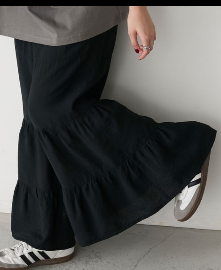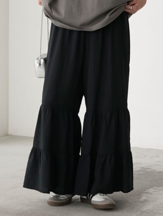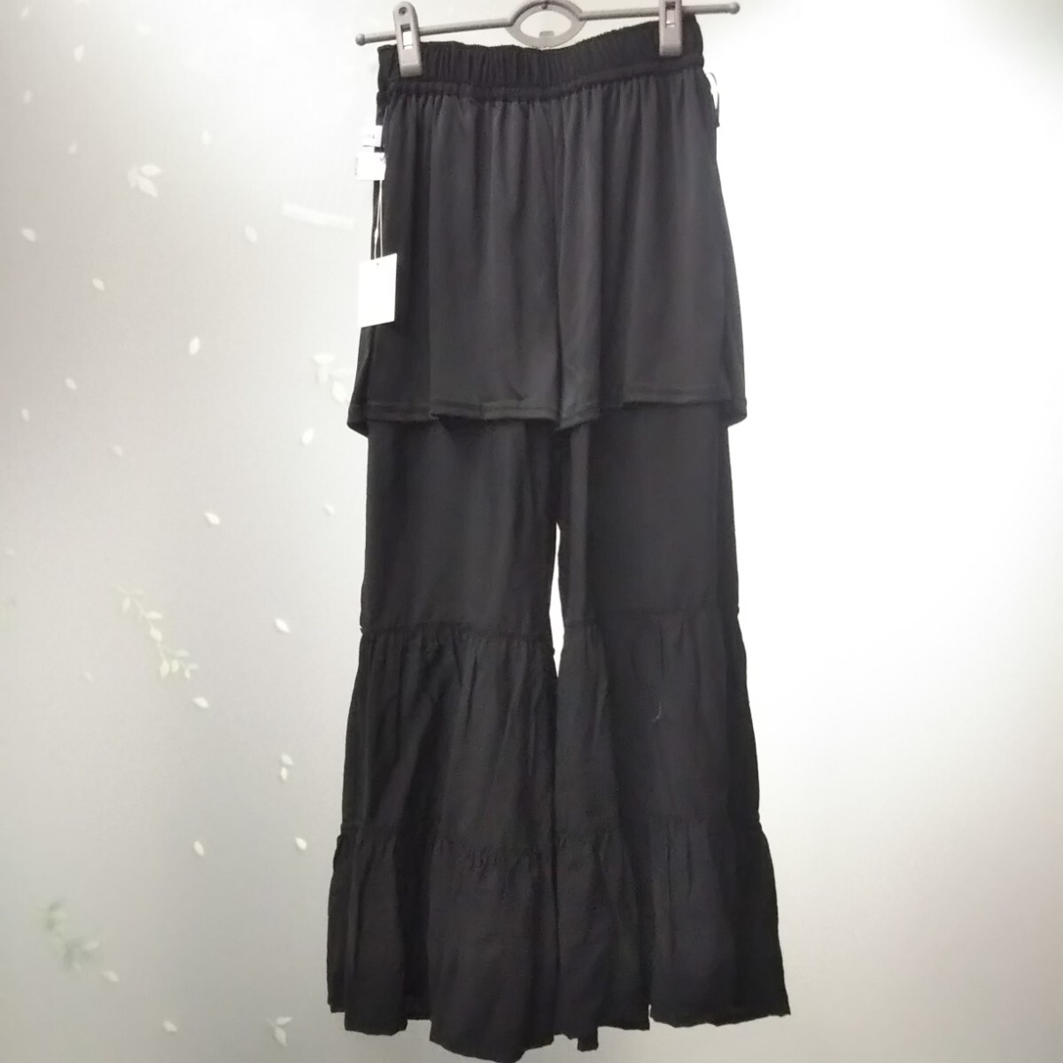 匿/ゆうパケット送込【未使用・タグあり/ペチパン】 黒 ブラック ペチコートパンツ ティアード パンツ