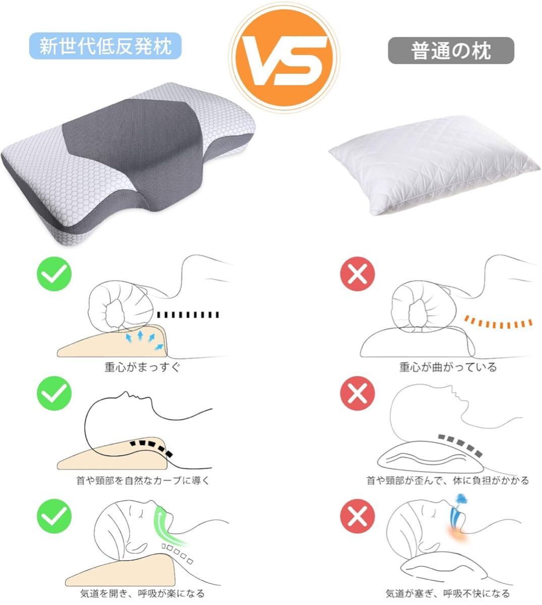 一般的なウレタンより、さらに衝撃吸収性が高い「低反発メモリーフォーム」を採用、人の体温や体圧に反応し、ゆっくり頭の形に沿って沈み込み、包み込むように首・肩に負担をかけずに心地良い睡眠を与えます。