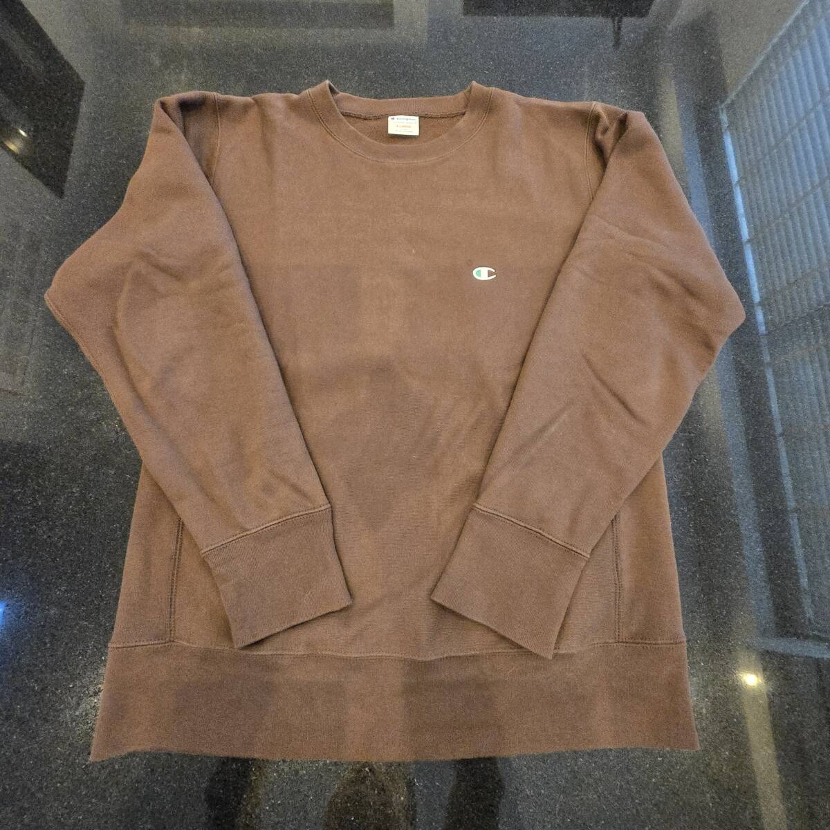 【C07】Champion(チャンピオン)・裏起毛ブラウン クルーネックスウェット XL(美品)
