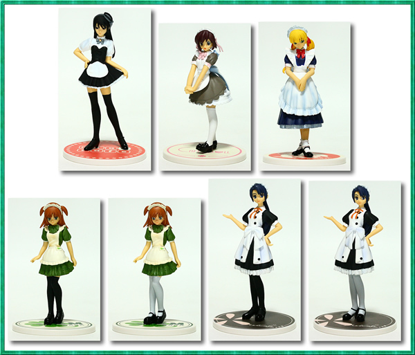 種類 | 定価600円(税別) 全7種 ●ミア・カフェ(メイド.イン.エンジェルズ.カフェ) ●カフェレストラン 神戸カノン ●メイドカフェ カフェドール ●ジャム アキハバラ ●ジャム アキハバラ(別カラーバージョン) ●メイド喫茶 メル・カフェ ●メイド喫茶 メル・カフェ(別カラーバージョン) ※全高約10.8~12.1cm(台座含む) ※2006年6月発売 |