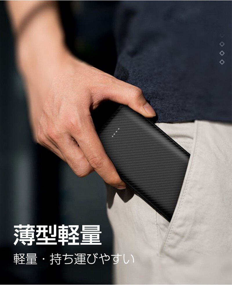 急速充電・薄型・軽量・大容量モバイルバッテリー 黒