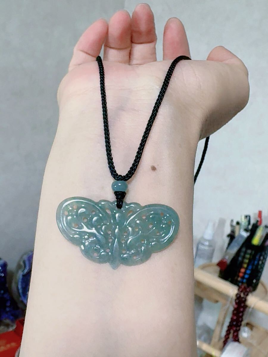 R2-01785天然本翡翠《本物保証》「蝶々」ペンダント 一品一図 高品質 一点物 魔除け 昇進 成功 風水 金運 財運 幸運 幸福 縁起物 パワーストーン