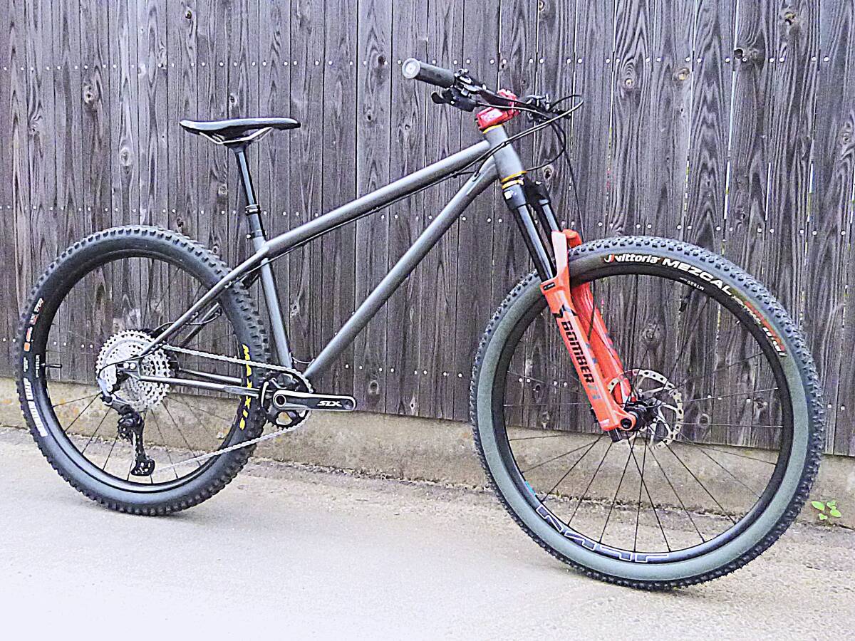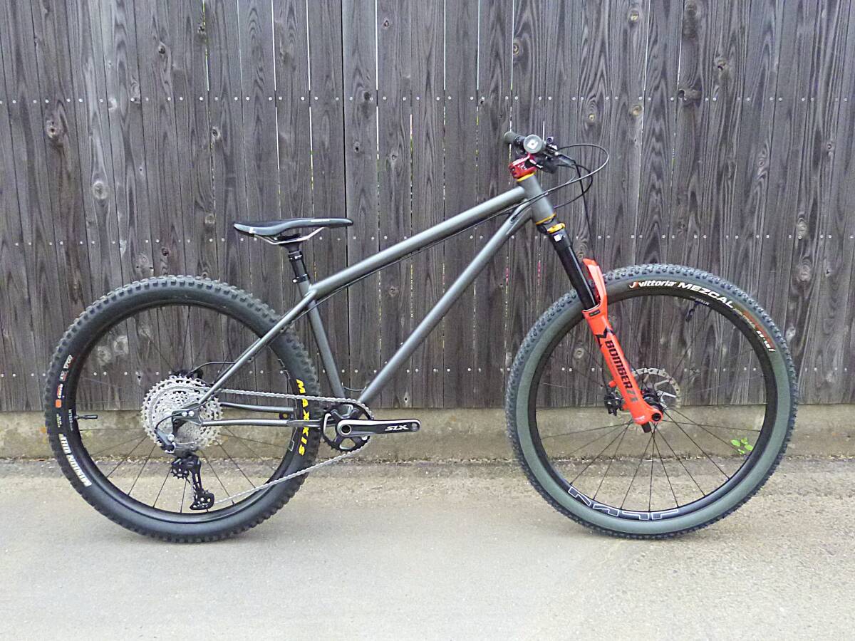 フレームはLONGサイズ、未走行組み上げただけの状態です。一部パーツ(Fフォークは手持ち使用品)を除き新品を多数使用してあります。