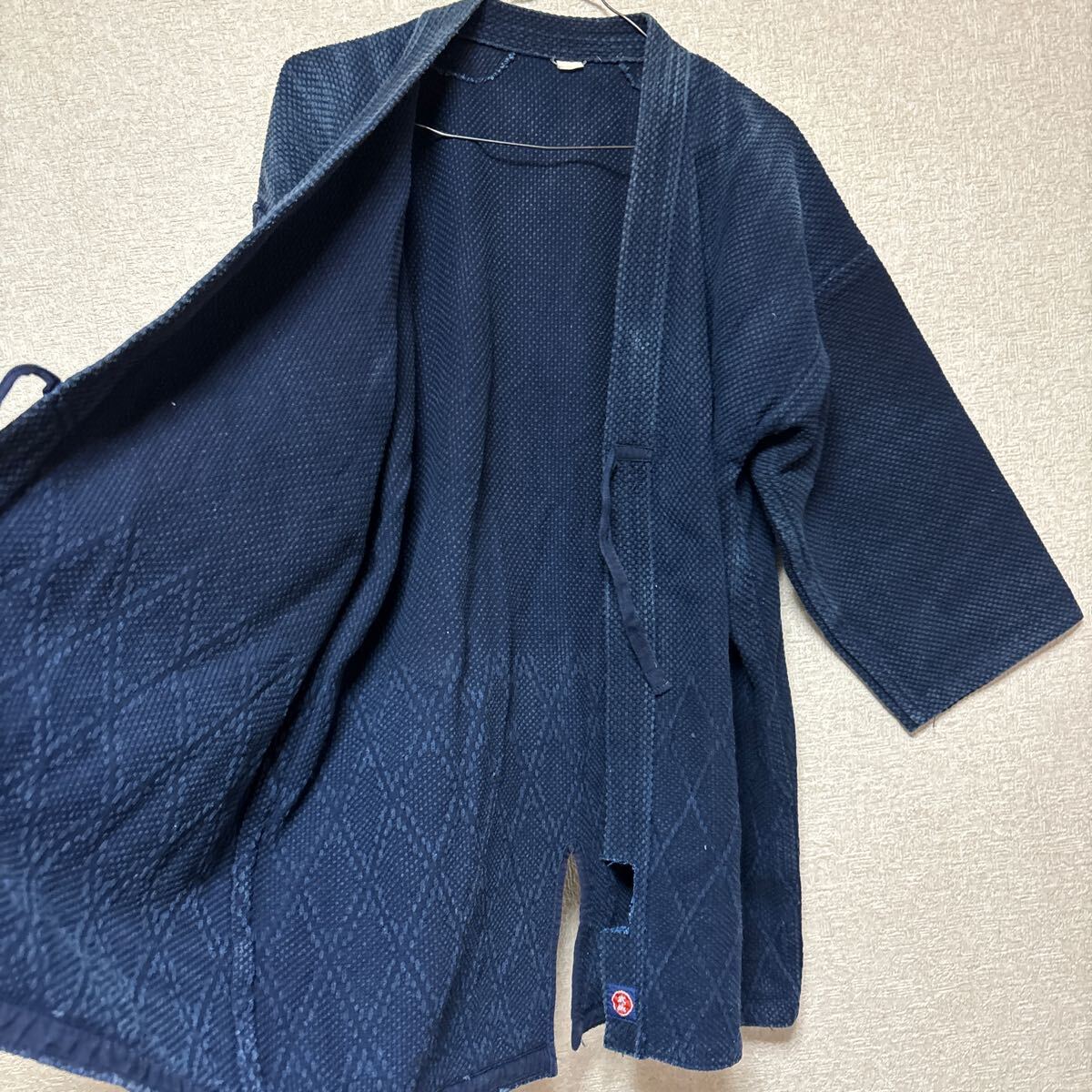 【生地カットあり】 MADE IN JAPAN 武蔵 濃紺 剣道着 サイズ不明 綿100% 藍染 刺し子 リメイク素材 藍染剣道衣 メンズMサイズ相当です。