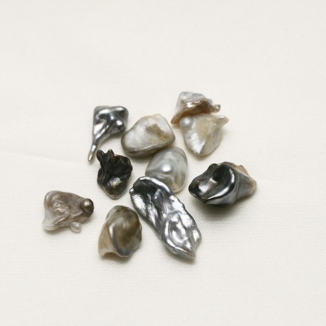 まるで浜辺にある貝殻の様なフォルムの南洋/タヒチケシパールルースです。こちらは10ピースセットでの販売となります。オリジナルのアクセサリー作りなどにお楽しみ下さい。注)こちらは当店にて穴あけ加工はできません。 |