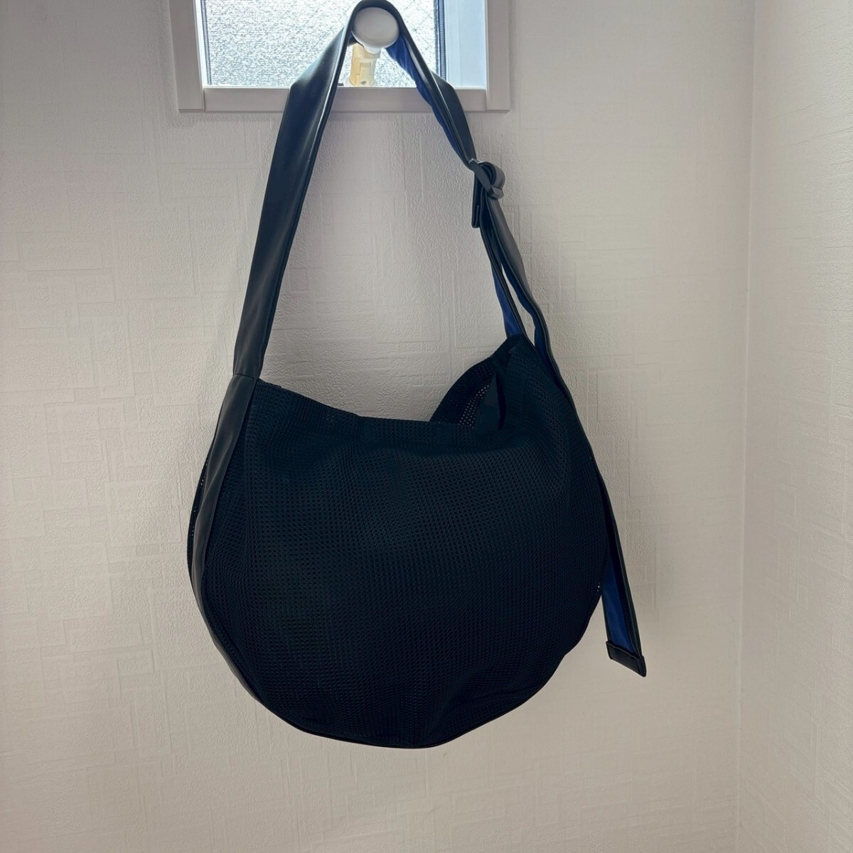 ■ポイント・サマームード高まるショルダーバッグ・メッシュ素材でありながら中身が見えにくい・程よいハリ感のあるメッシュ素材で使い心地抜群・長さ調節可能な異素材のバイカラーショルダーベルト・A4サイズ、ペットボトル収納可能・口元にはマグネットボタン仕様