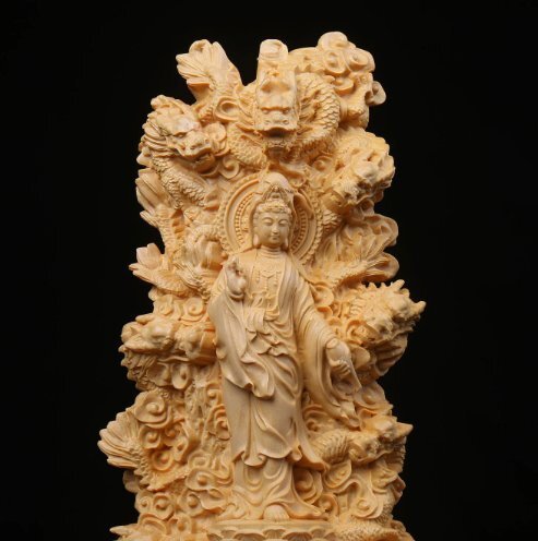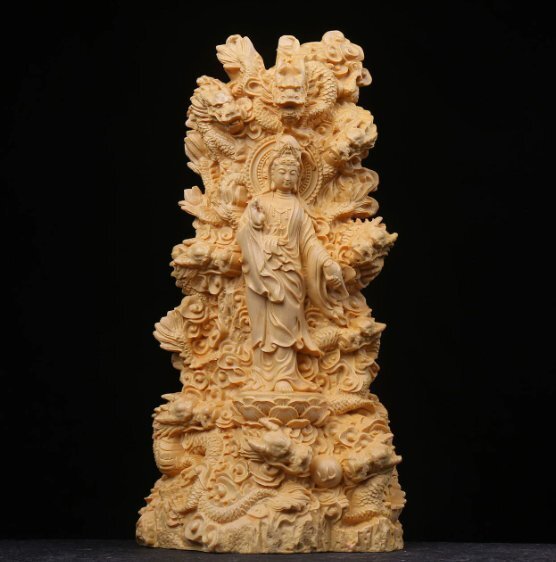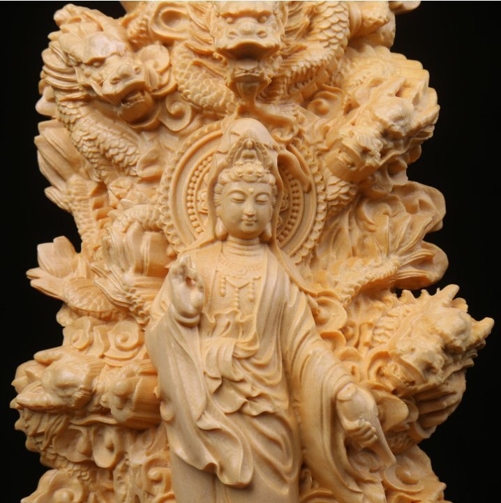 ひのき精彫九龍観音仏像置物御龍菩薩(ごりゅうぼさつ)住居寺仏堂装飾工芸品