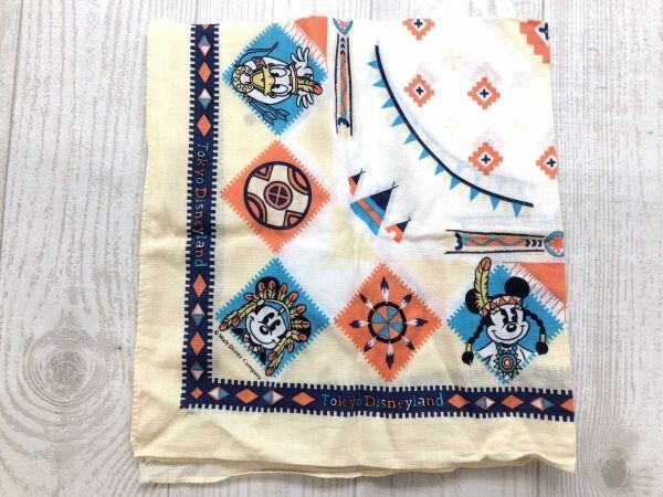 東京ディズニーランド 平成レトロ グッズ ウエスタンランド 西部開拓 ネイティブ・アメリカ インディアン 総柄 バンダナ ハンカチ ベージュです。