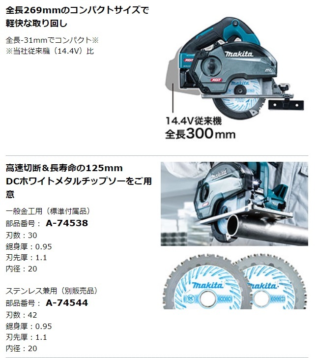 マキタ CS003GZ (DCホワイトメタルチップソー付) (バッテリ・充電器・ケース別売) 125mm コードレスチップソーカッタ makita 40V