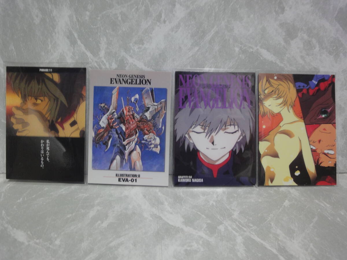 1枚目の写真は1997年頃に発売していたカードダスマスターズ  新世紀エヴァンゲリオン PART2  第弍集 計34枚 初版版です。当時開封後にスリーブに入れていましたが,今回出品の際,に確認の為とスリーブも27年たっていましたので新しいスリーブに入れ替えています。2枚目~8枚目の写真は各写真です。状態は見た感じ当時のまま傷なくきれいだと思いますが神経質な方は入札をご遠慮ください。。合計枚数は38枚です。コンプリートではありません。発送はレターパックライトでお願いします。
