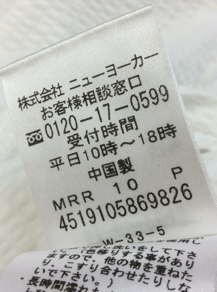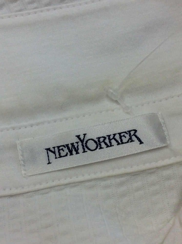 管理番号:40^126256 ニューヨーカー 白地柄半袖カットソー 襟あり 表示サイズ:M 実寸(参考)