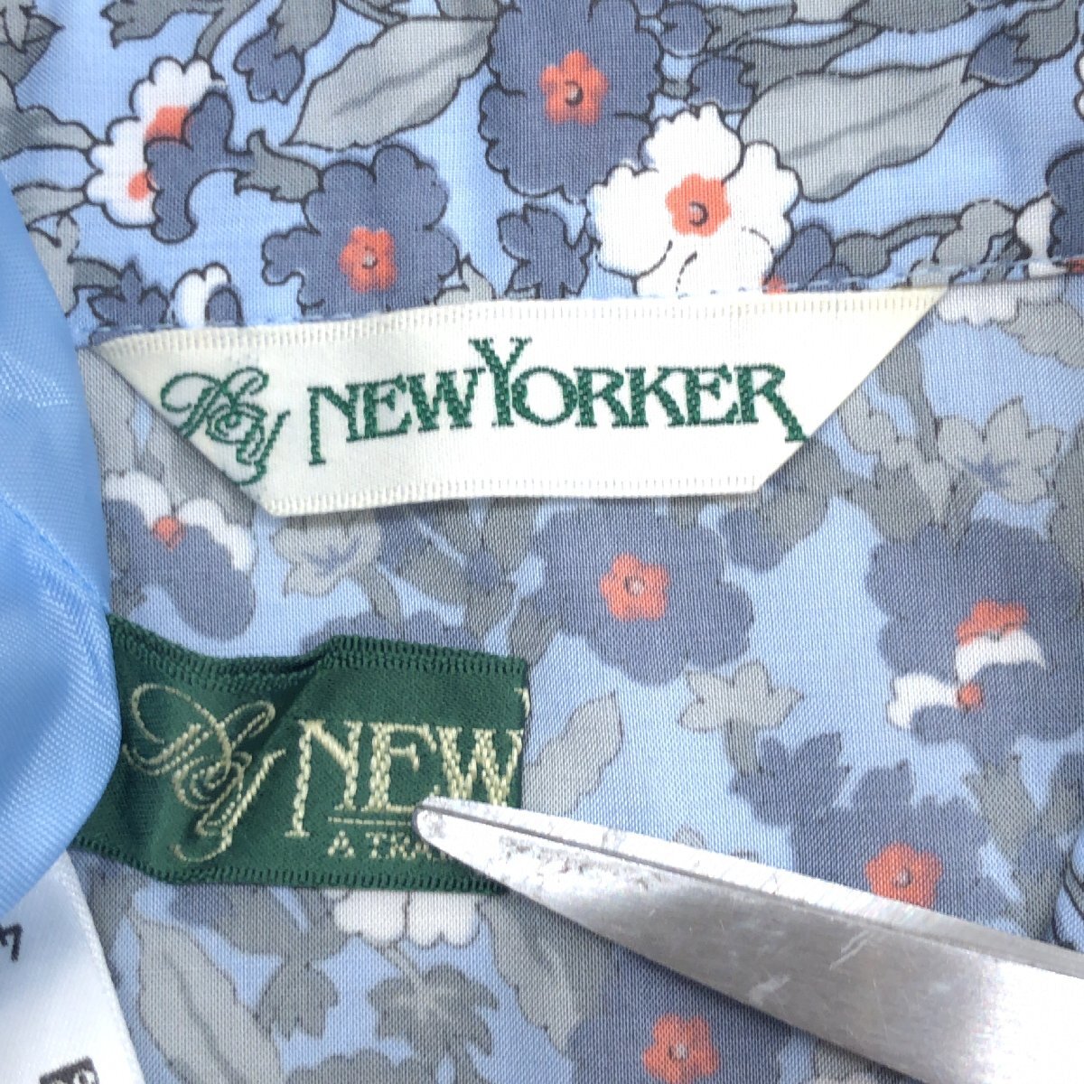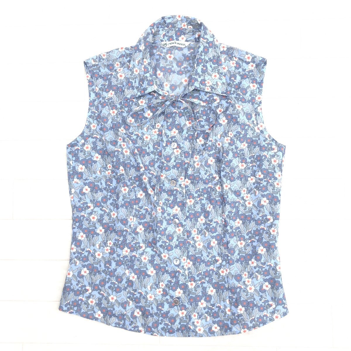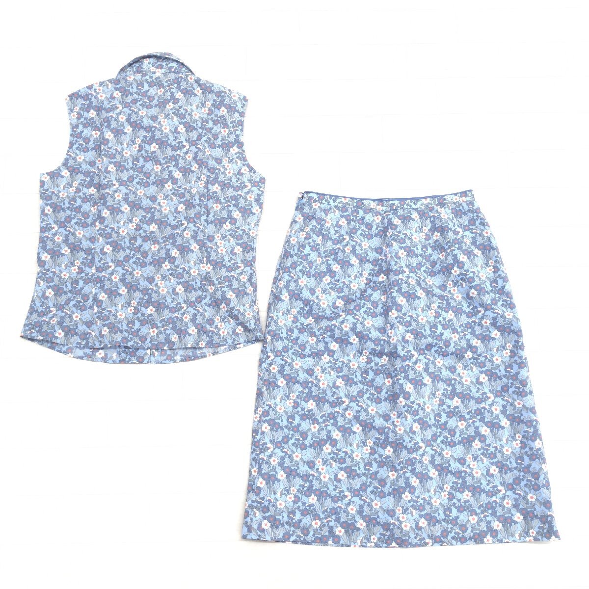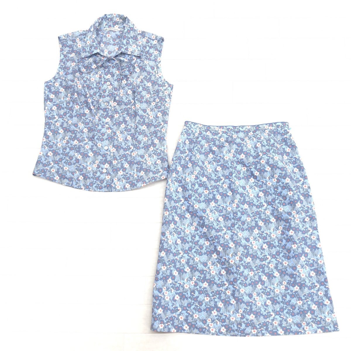 極美品 NEWYORKER ニューヨーカー 花柄 ノースリーブ シャツ スカート 上下セットアップ 9(M) 日本製 スーツ ブラウス ミディ丈 レディース