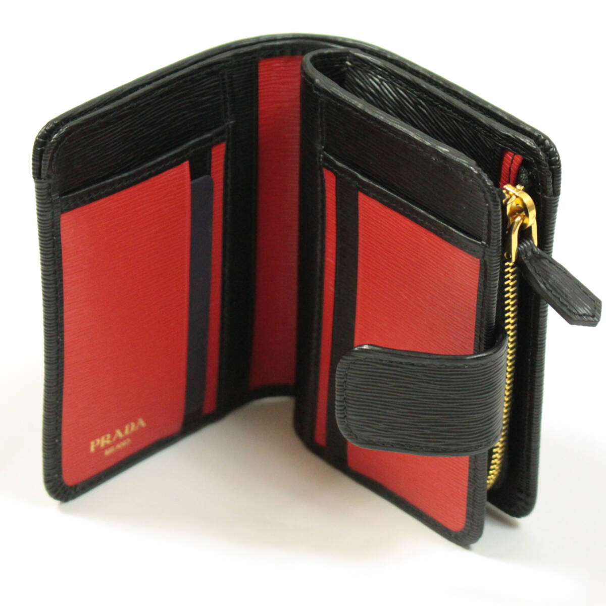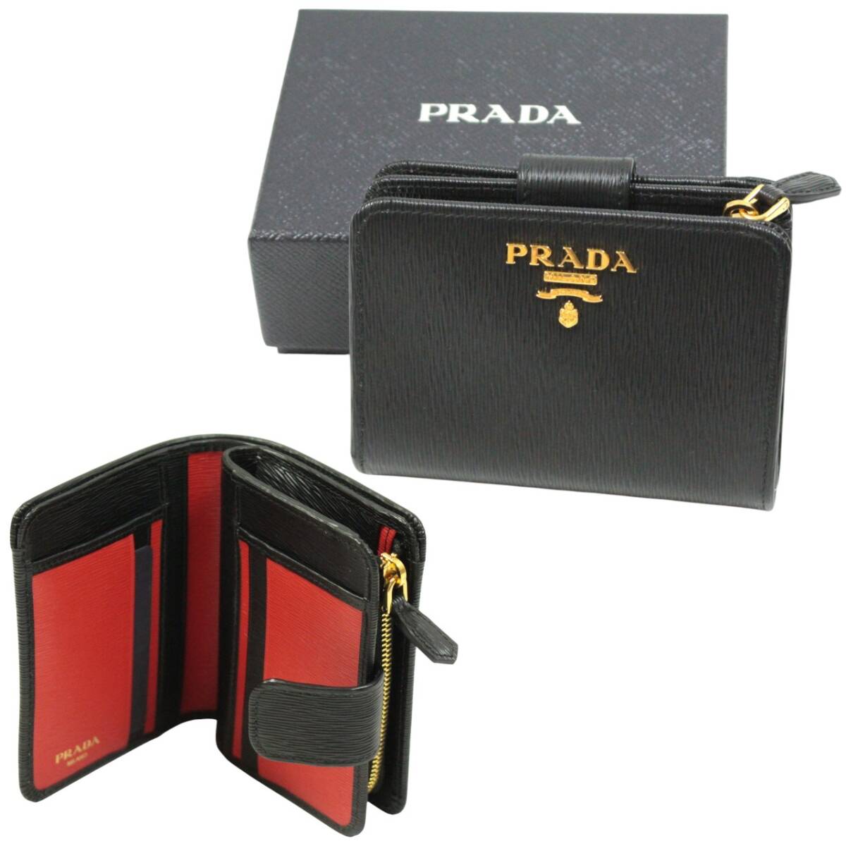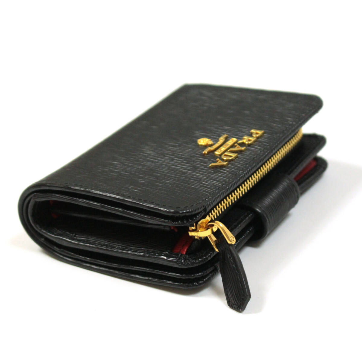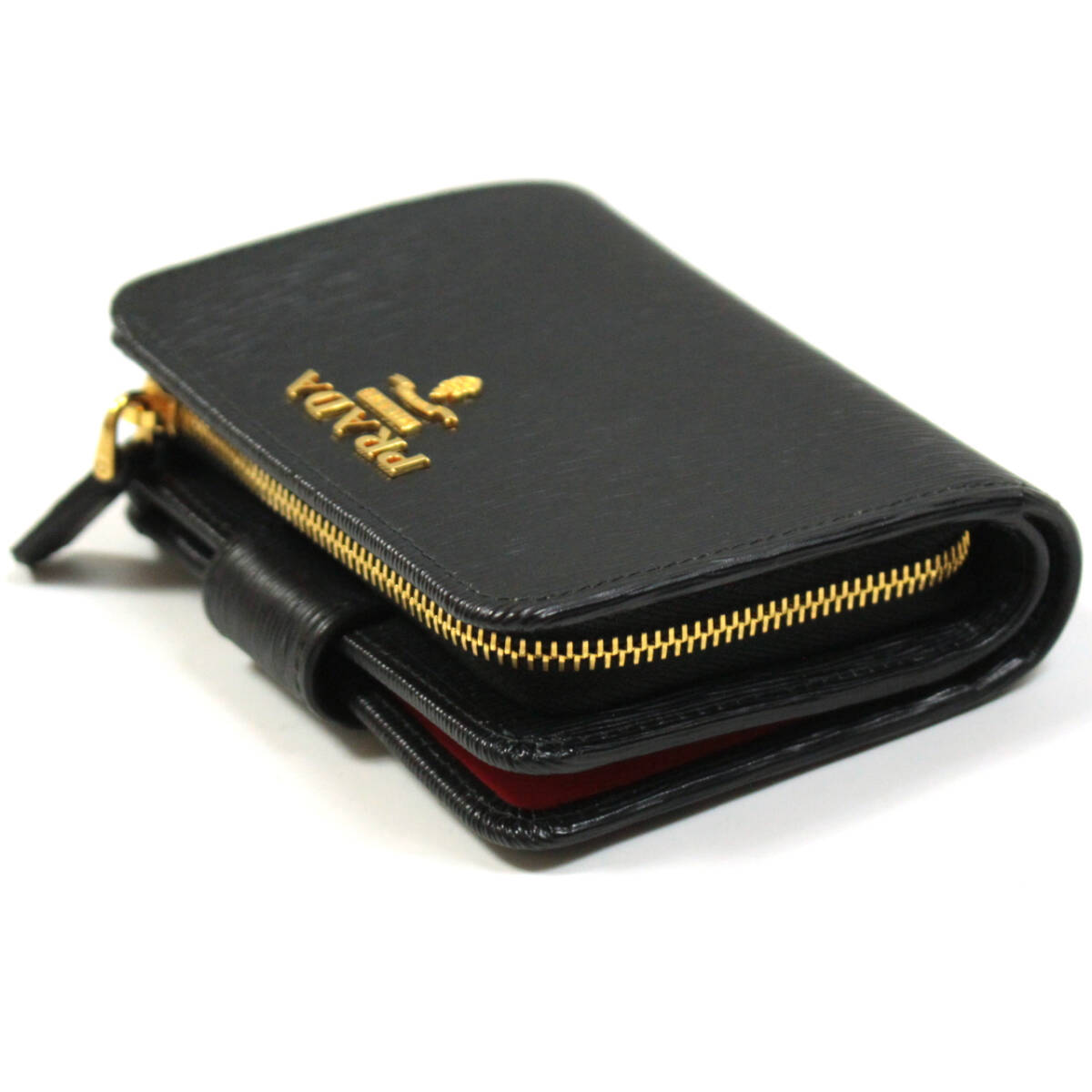 PRADA 二つ折り財布 L字ジップ VITELLO MOVE ブラック/レッド 1ML018