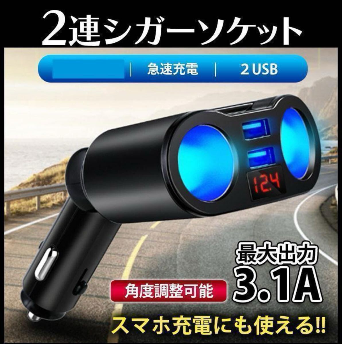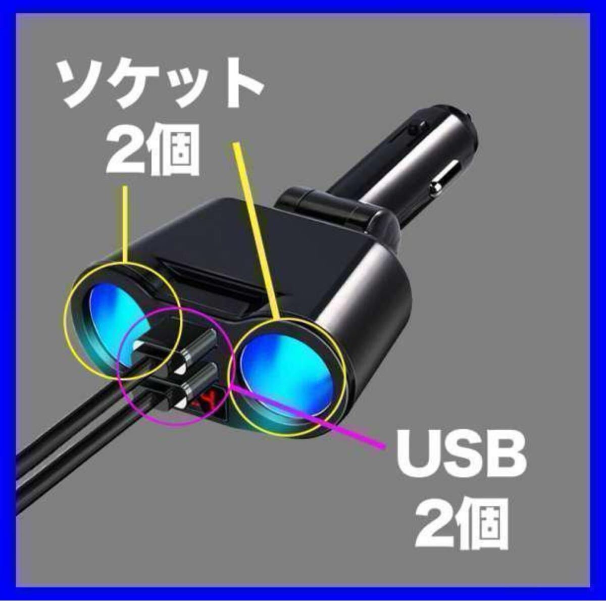 1つのシガーソケットからソケット口2個、USBポート2ポートをとることができるソケットです!