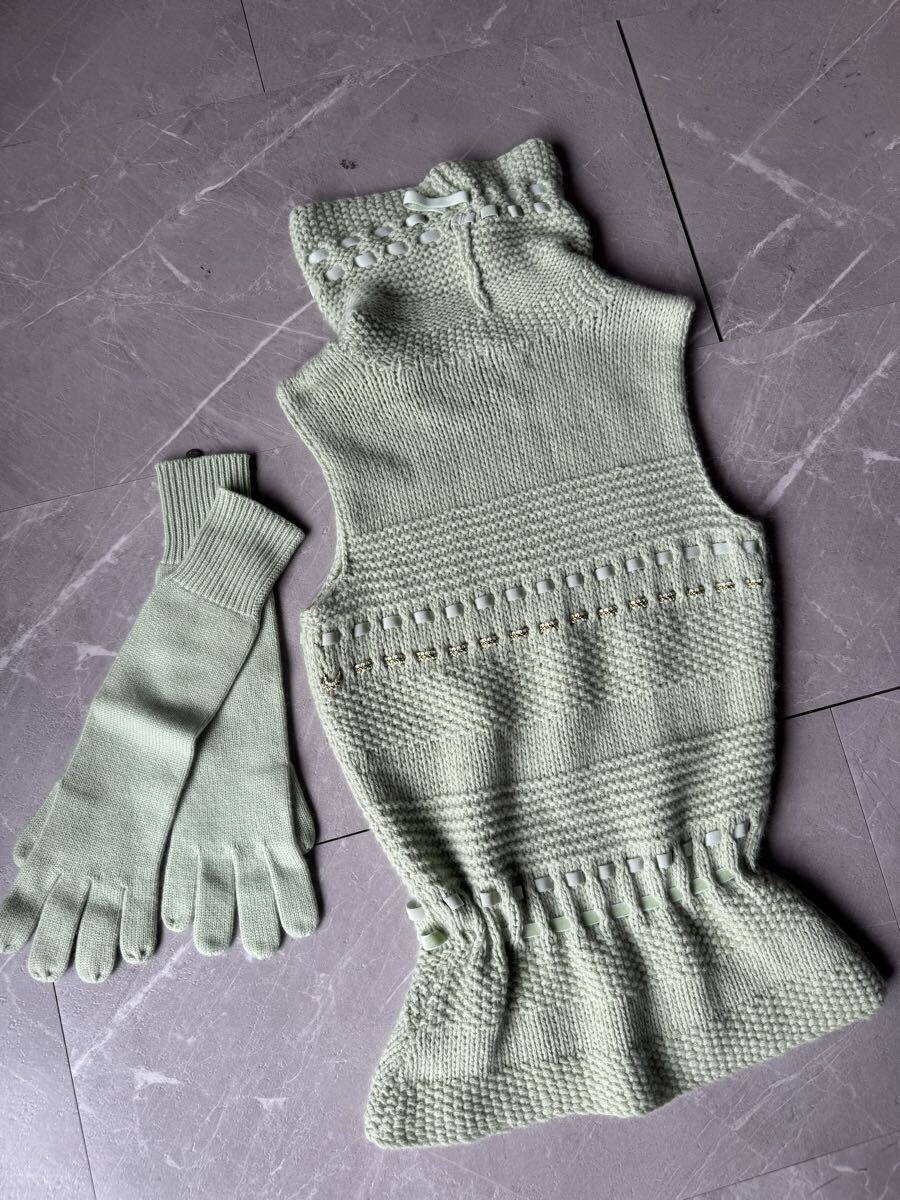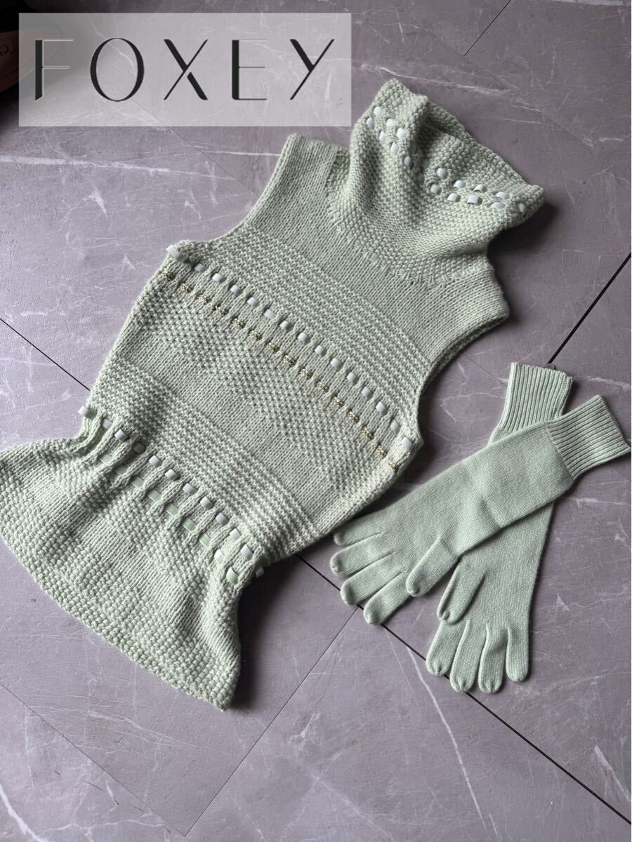 FOXEY(フォクシー)の上質なカシミヤ100%ニットトップスと、同素材の手袋セットです。