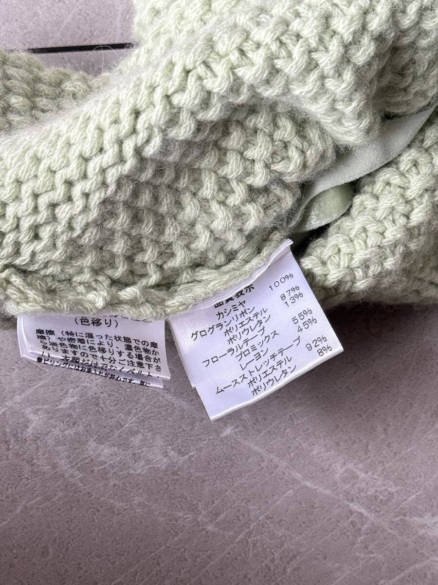 柔らかく暖かな着心地と、上品な淡いグリーンのカラーが魅力。