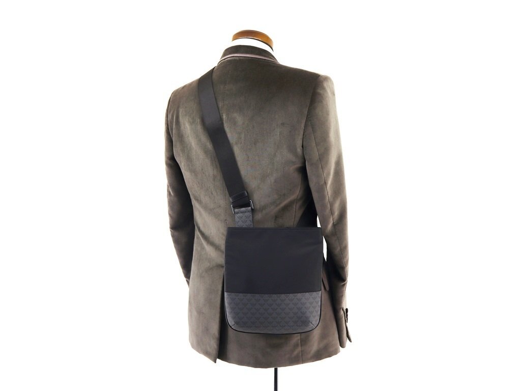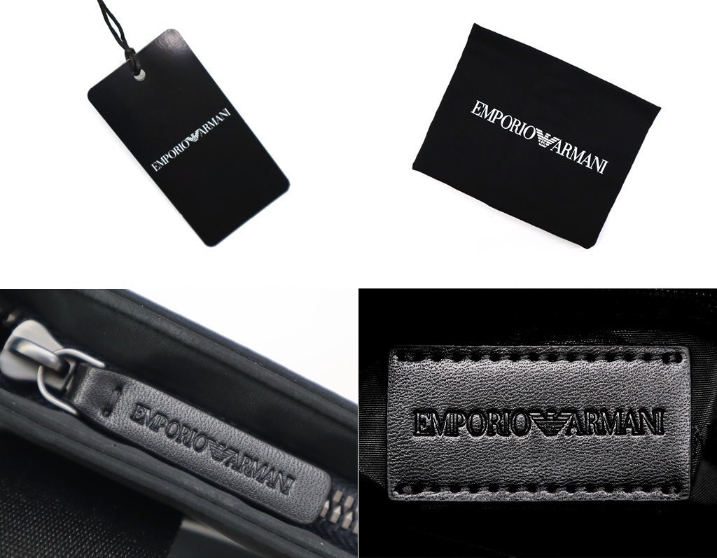 6万新品◆EMPORIOアルマーニ イーグルモノグラム柄バイカラー 軽量スリムクロスボディバッグ ショルダー紺黒灰