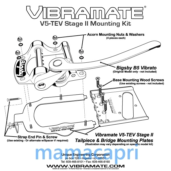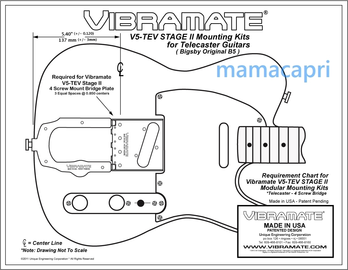 Vibramate Stage II Vintage Fender Telecaster Adapter Kit For Bigsby B5 本体&プレート&ビス類付属 合計1セット *Bigsby B5は別途お買い求めください。 |