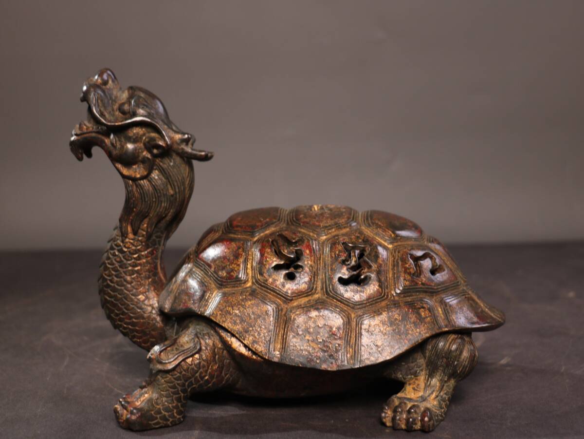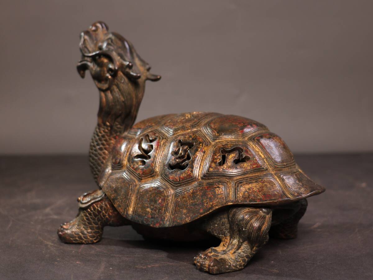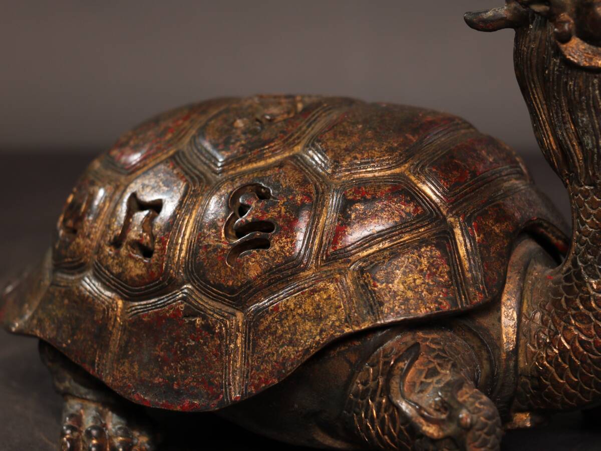 【超珍館蔵】銅製 泥金 朱砂 神獣龍龜炉 置物 賞物 古賞物 古董品 古美術品 時代物 旧家蔵出 稀少珍蔵品