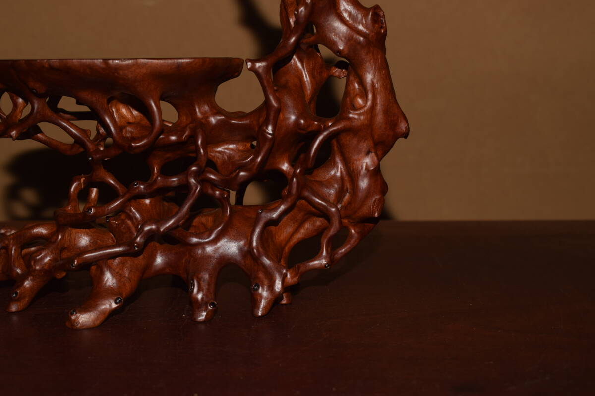 <根卓・天然木・繊細彫・紫檀・黒檀・鉄刀木・雑木・ 盆栽卓・無垢材・花台・小品盆栽>天板、間口12,2cm、高さ21,0cm