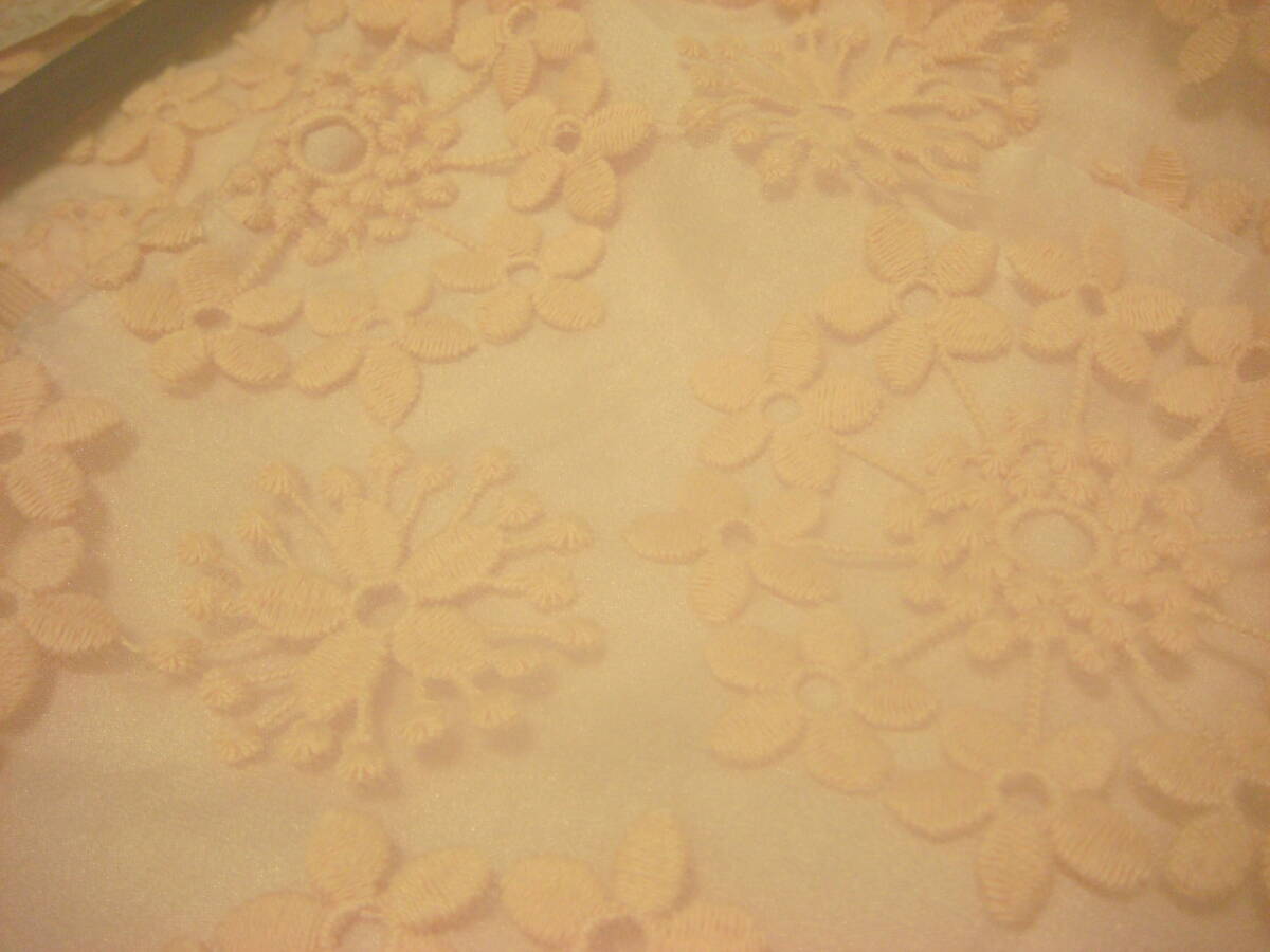オーガンジーのような生地に大きなお花の刺繍が素敵です。