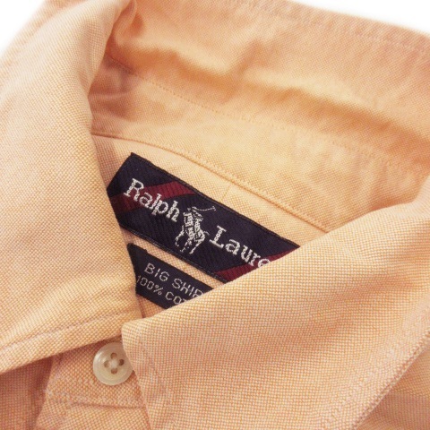 ラルフローレン RALPH LAUREN BIG SHIRT ボタンダウンシャツ オックスフォードシャツ 長袖 ロゴ刺繍 オーバーサイズ L オレンジ