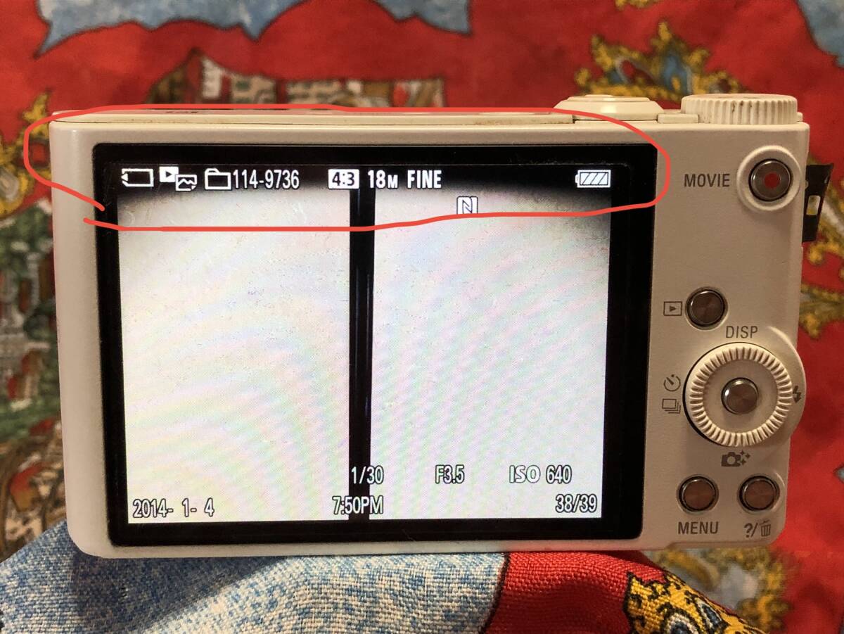 *静止画撮影時画面上側に影が映り込みます。(写真赤丸部分参照)