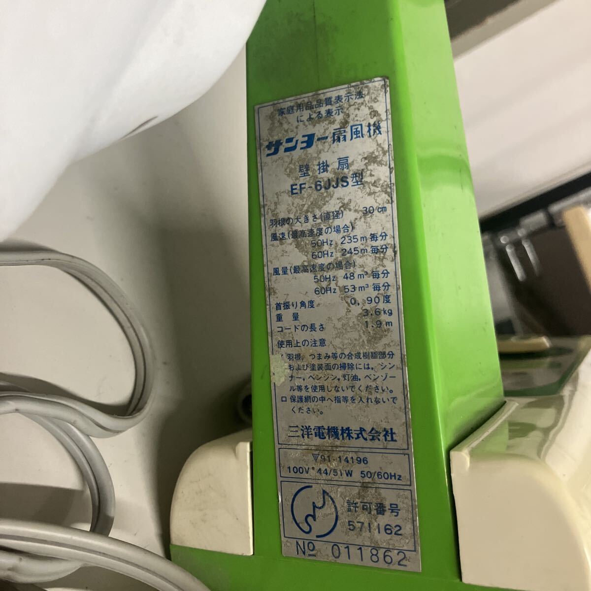 ●出品商品は サンヨー扇風機 EF-6JJS 30cm 動作確認済み 中古 緑 壁掛け アンティーク 昭和レトロ 当時物 首振り 160サイズ発送 のみの出品 です。