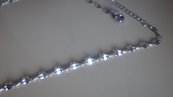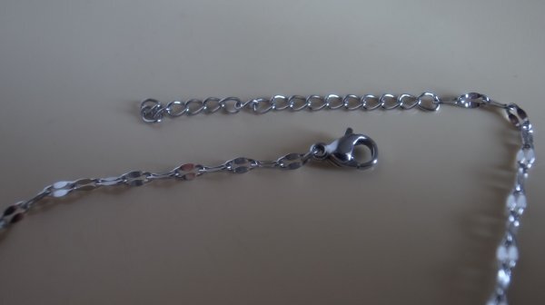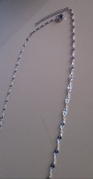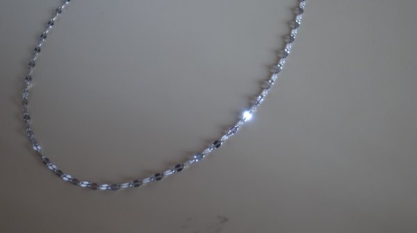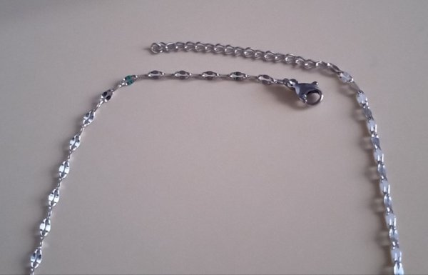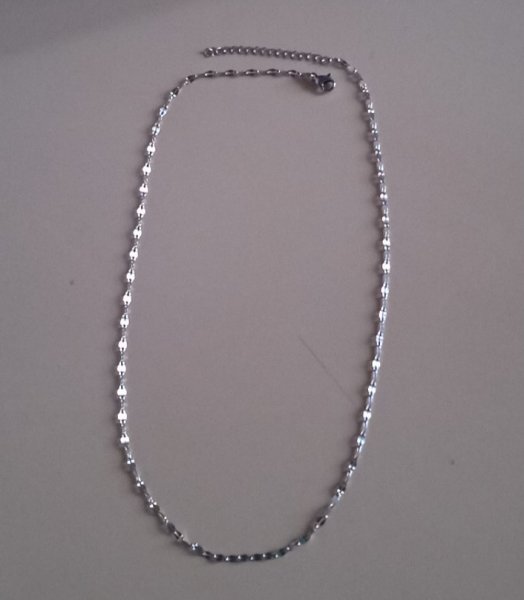 シルバー色のリップチェーンネックレス、調整可能な長さとロブスタークラスプ付き。