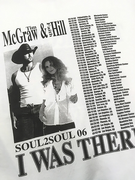 アメリカのカントリー音楽界を代表する歌手ティム・マグロウ(Tim McGraw)と、妻で同じく人気カントリー歌手のフェイス・ヒル(Faith Hill)が共同で行った大規模ツアーTim McGraw SOUL2SOUL 2006 TOUR Tシャツ。
