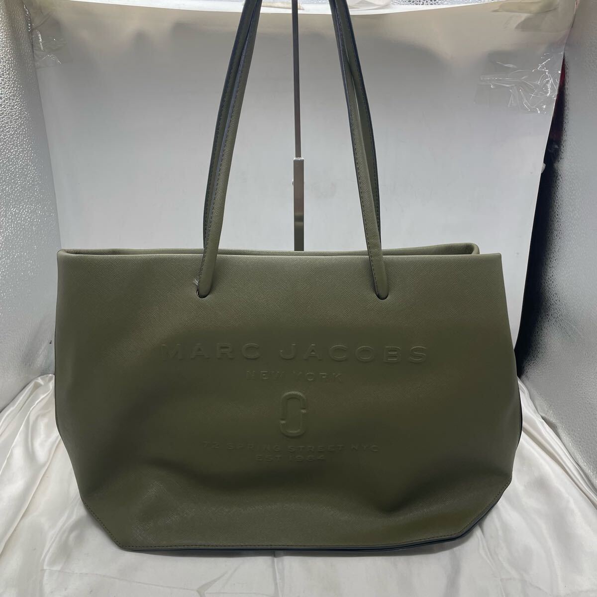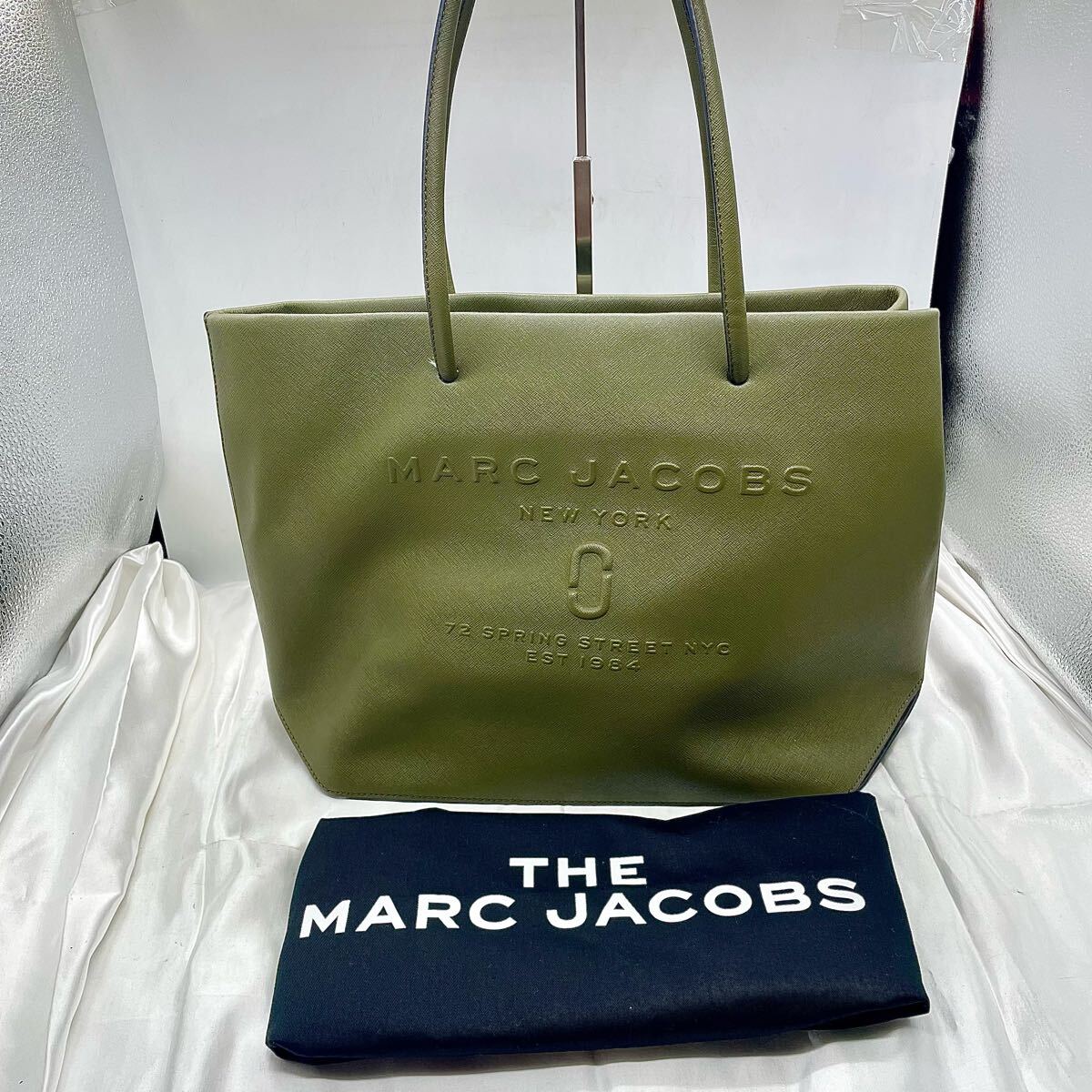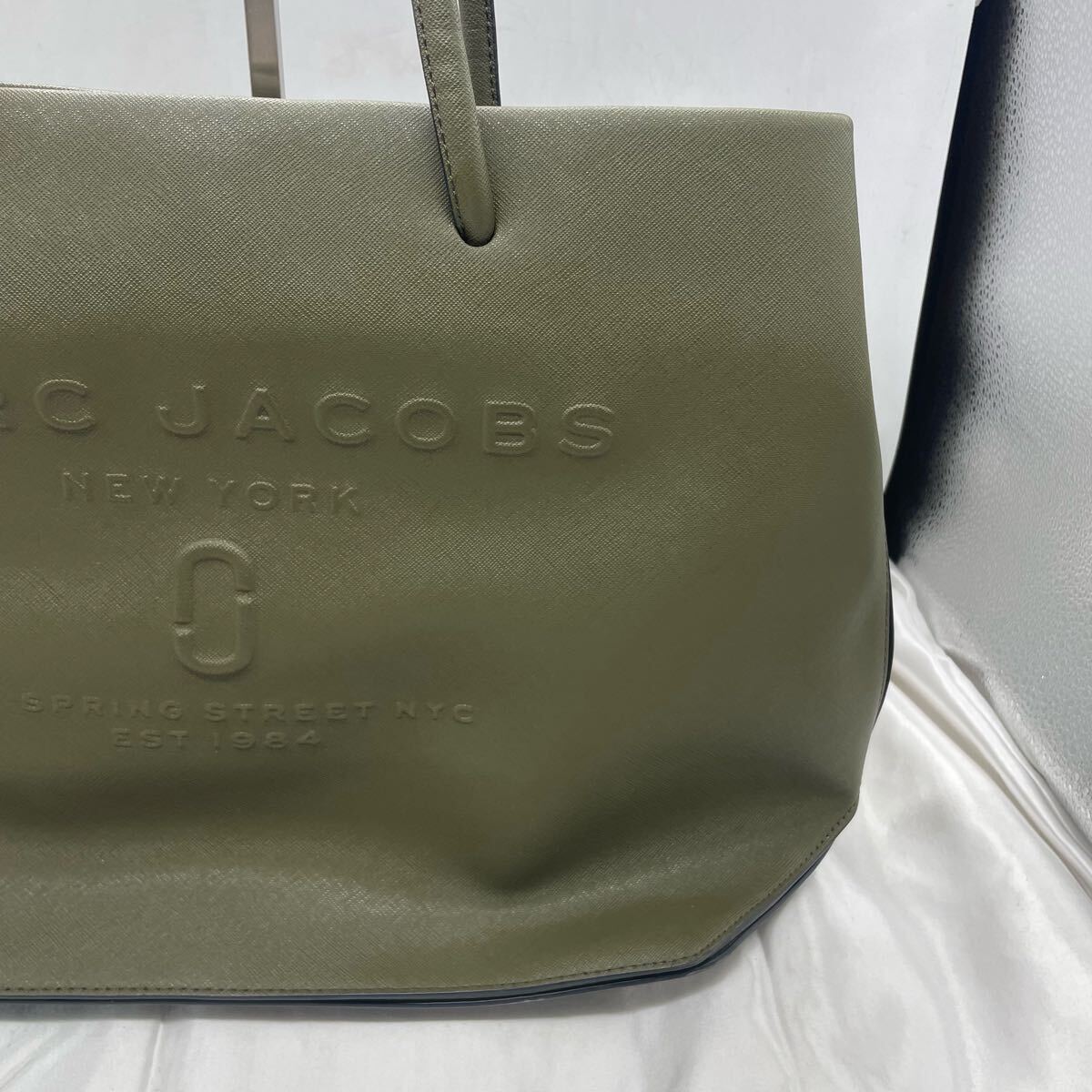 【MARC JACOBS】ロゴエンボス トートバッグ カーキ グリーン 保存袋付き 型崩れあり レディース 当時物 現状品 u9744