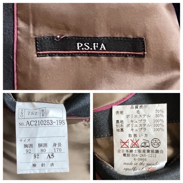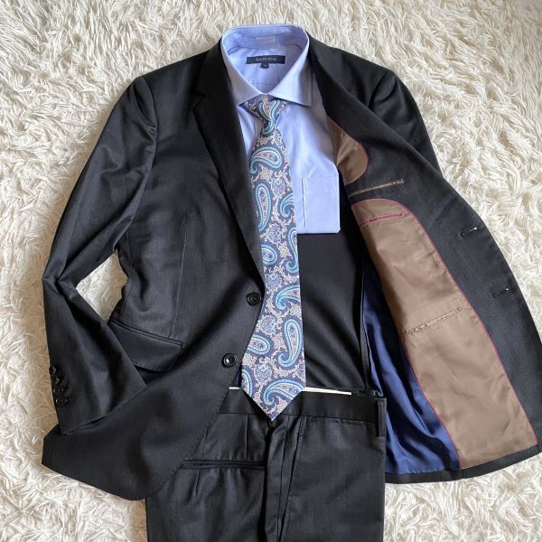 ☆美品☆Perfect Suit Factory 背抜き 本切羽 A5 M相当 ダークグレー セットアップ メンズ スーツ パーフェクトスーツファクトリー