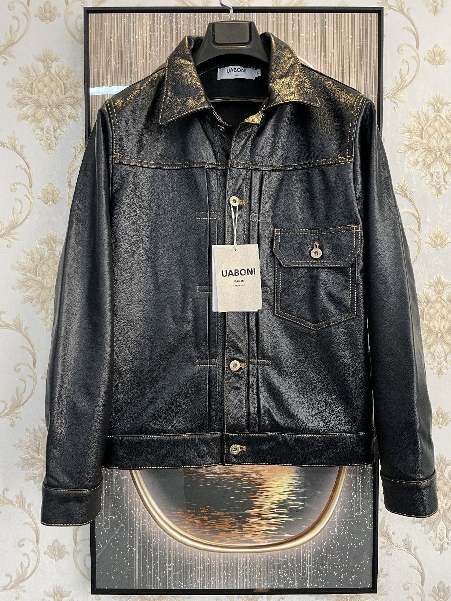 最高級EU製&定価15万◆UABONI*ユアボニ*レザージャケット*フランス*パリ発◆高品質牛革 オシャレ ライダース オートバイ 革ジャン XL/50