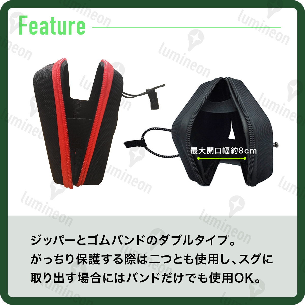■この商品最大の特徴はその二重保護システムにあります。普段はジッパーを閉じることでしっかり保護し、ゴルフプレイ中に素早く距離計を取り出したいときは、ジッパーを閉めずにゴムバンドを使用すれば簡単に距離計の出し入れが可能となっております。