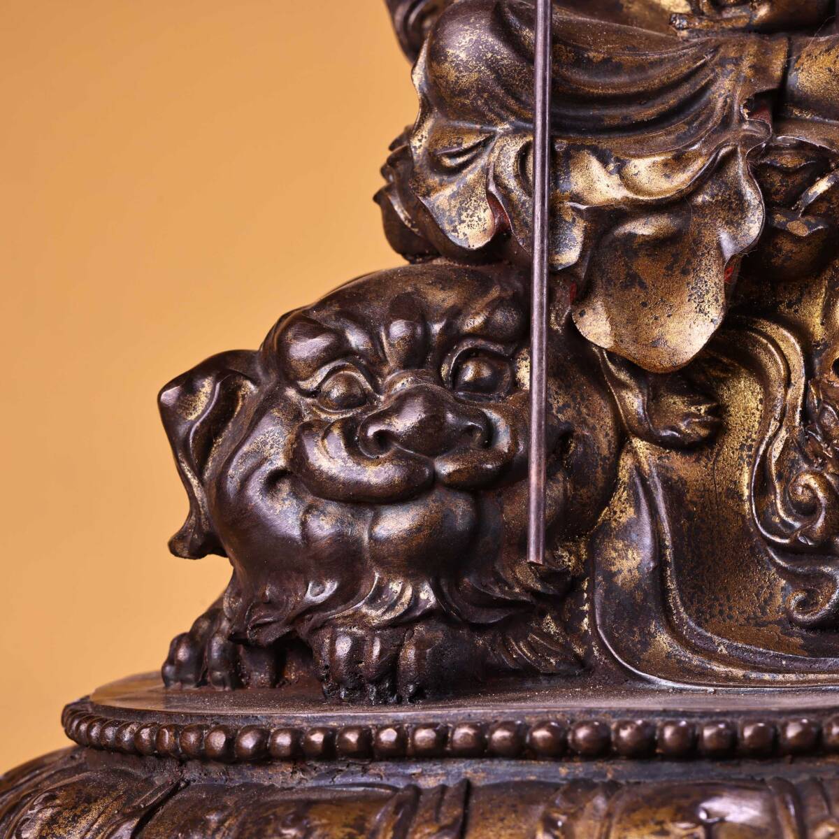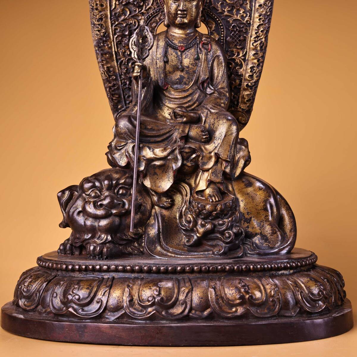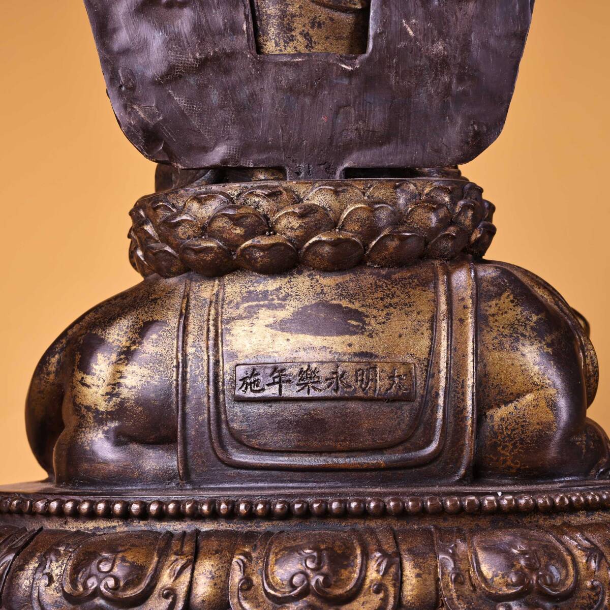 *珍品旧蔵* 大明 永樂年製 純銅 全銅 高浮彫鏨刻 泥金地藏王菩薩 仏像 奉納されていた 供養品 銅製 極細工 中国古玩 骨董品 古美味 H48