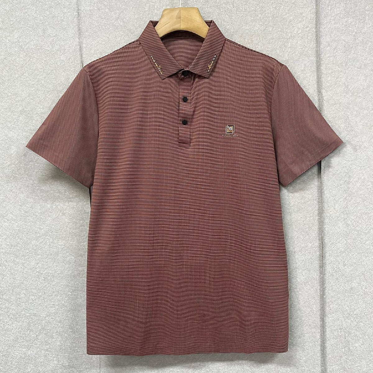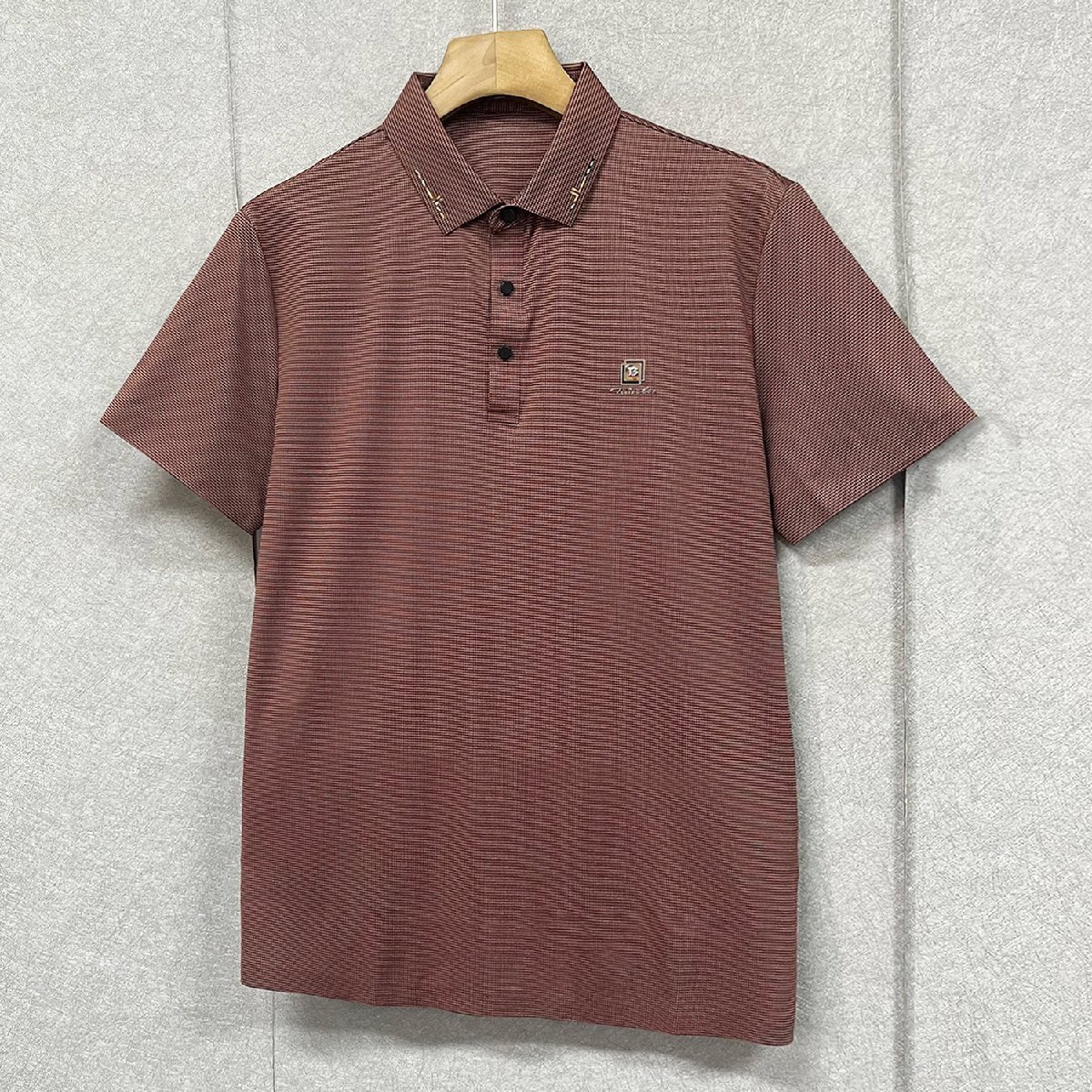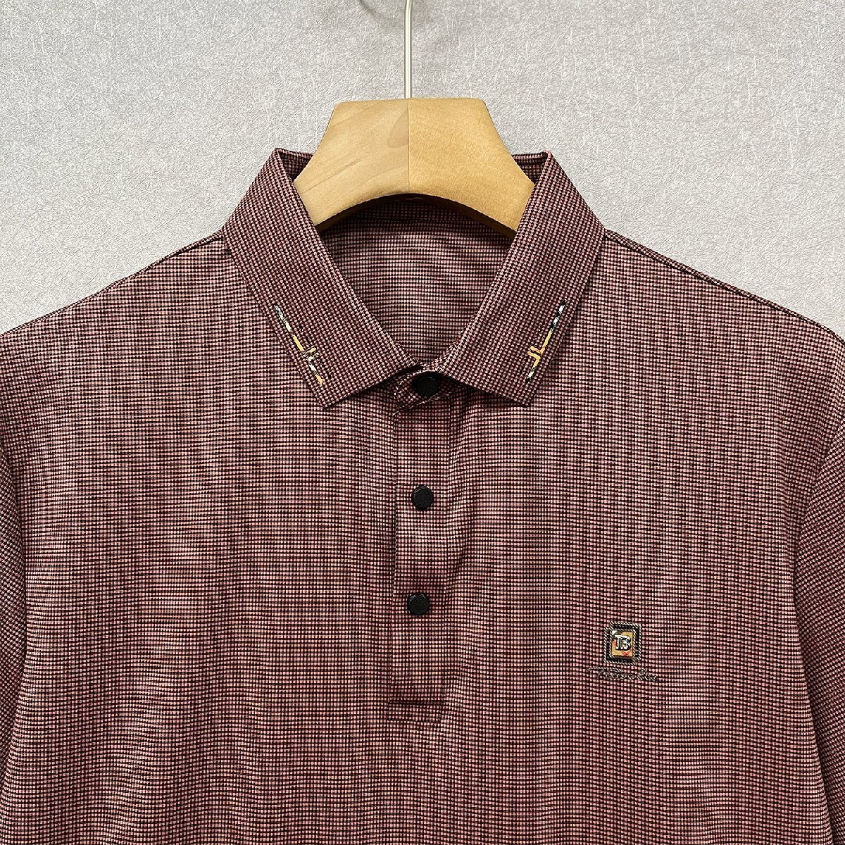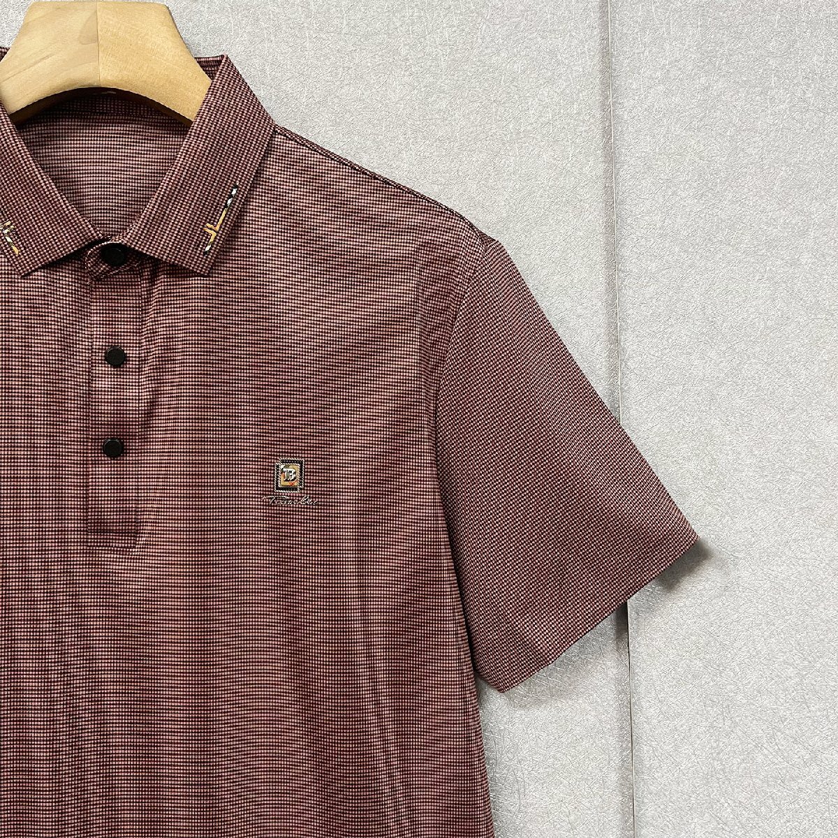 半袖poloシャツ イタリア製造 コットン混 滑らか ソフト 快適 チェック柄 総柄 折り襟 高級 ビジネス ゴルフ メンズ フォーマル SIZE:M